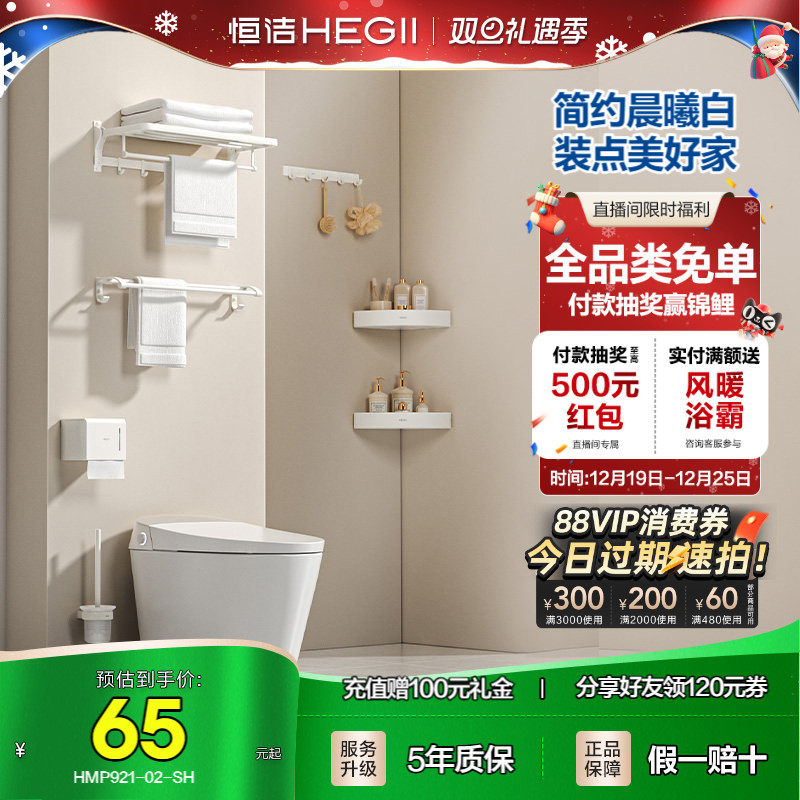 恒洁晨曦白卫生间厕所浴室挂件浴巾架毛巾架挂钩五金置物架免打孔