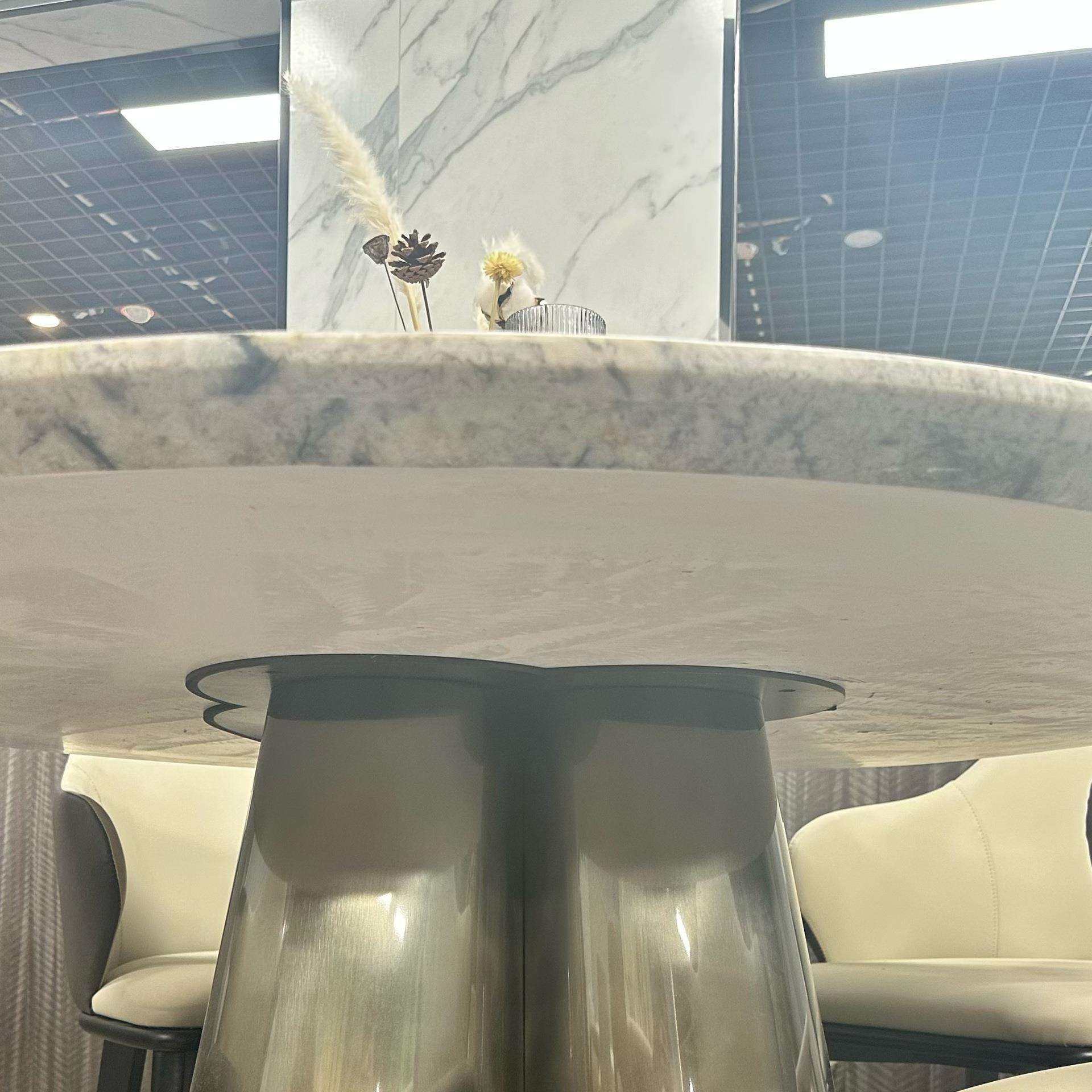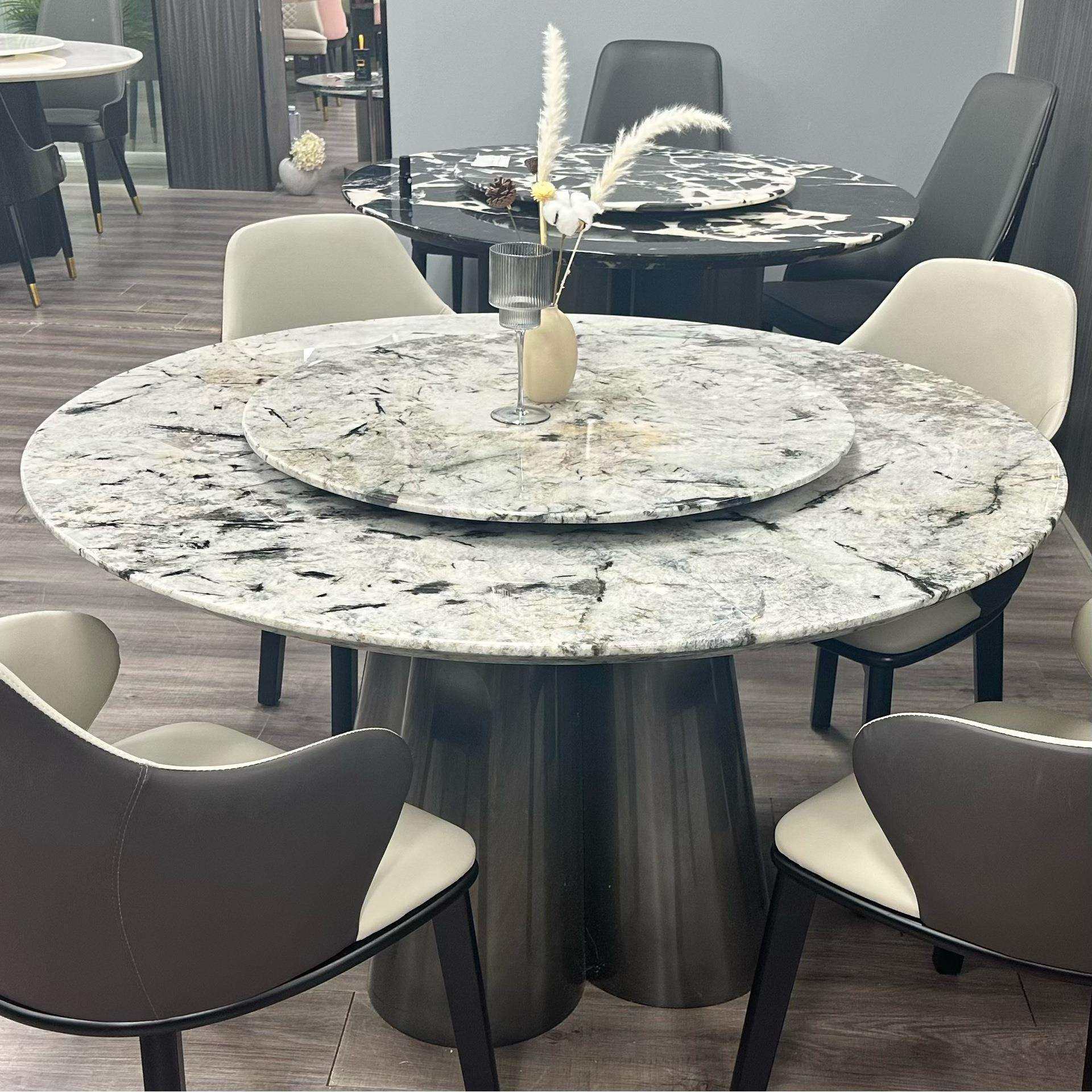 纯天然金枝玉叶奢石餐桌高档别墅简约风家用大理石大圆餐桌椅组合