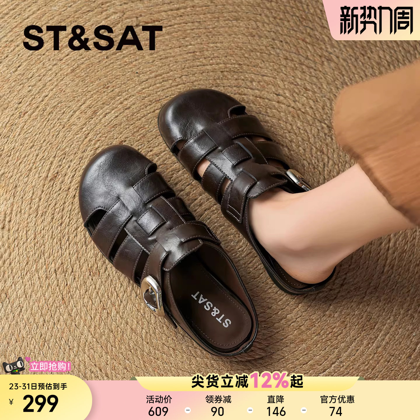 星期六真皮包头凉鞋女2026春季新款软底勃肯鞋平底一脚蹬休闲凉鞋