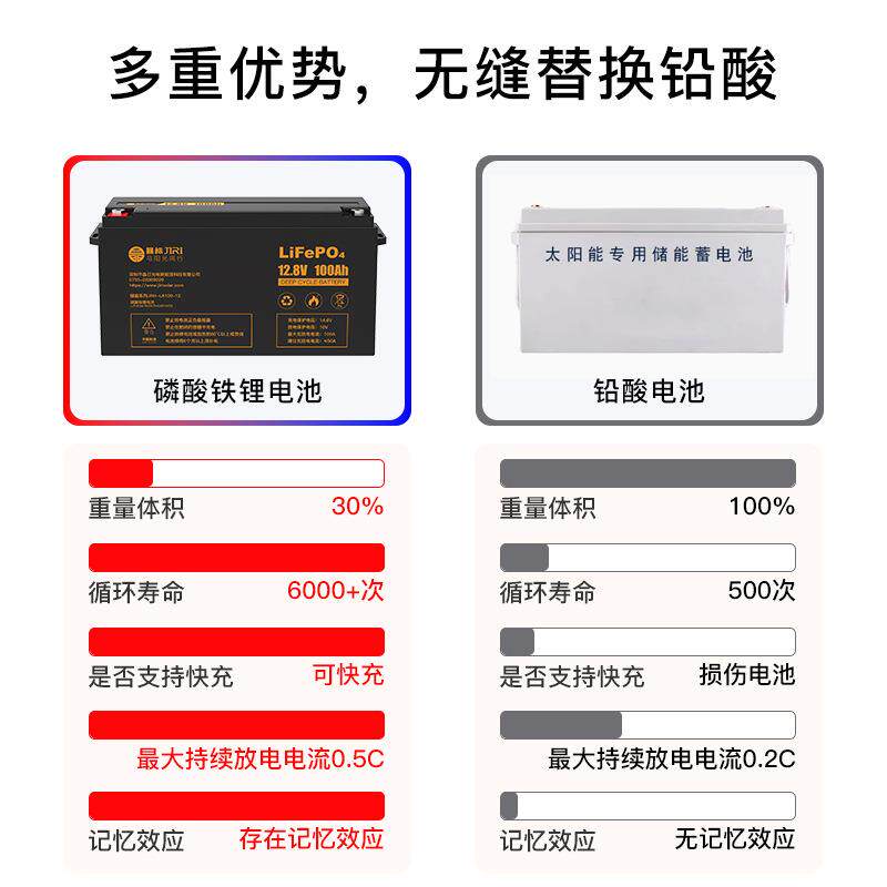 太阳能电瓶储能磷酸铁锂电池12v24v大容量锂电池组铅改锂房车