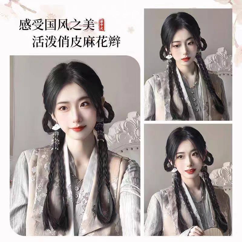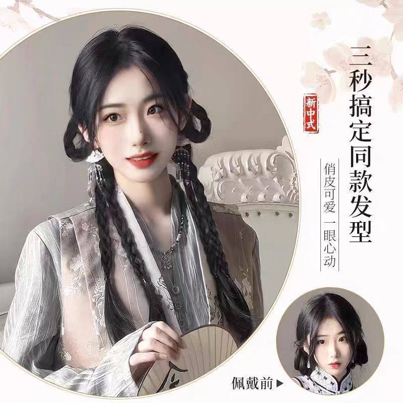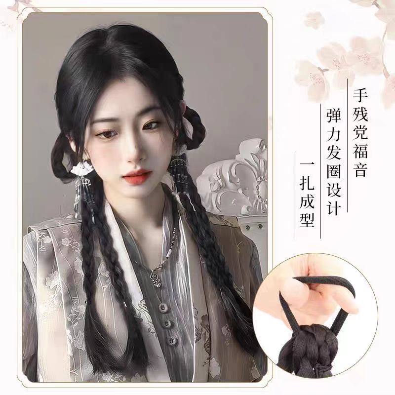 垂耳兔假辫子新中式双马尾发饰麻花辫古风汉服假发头发配饰