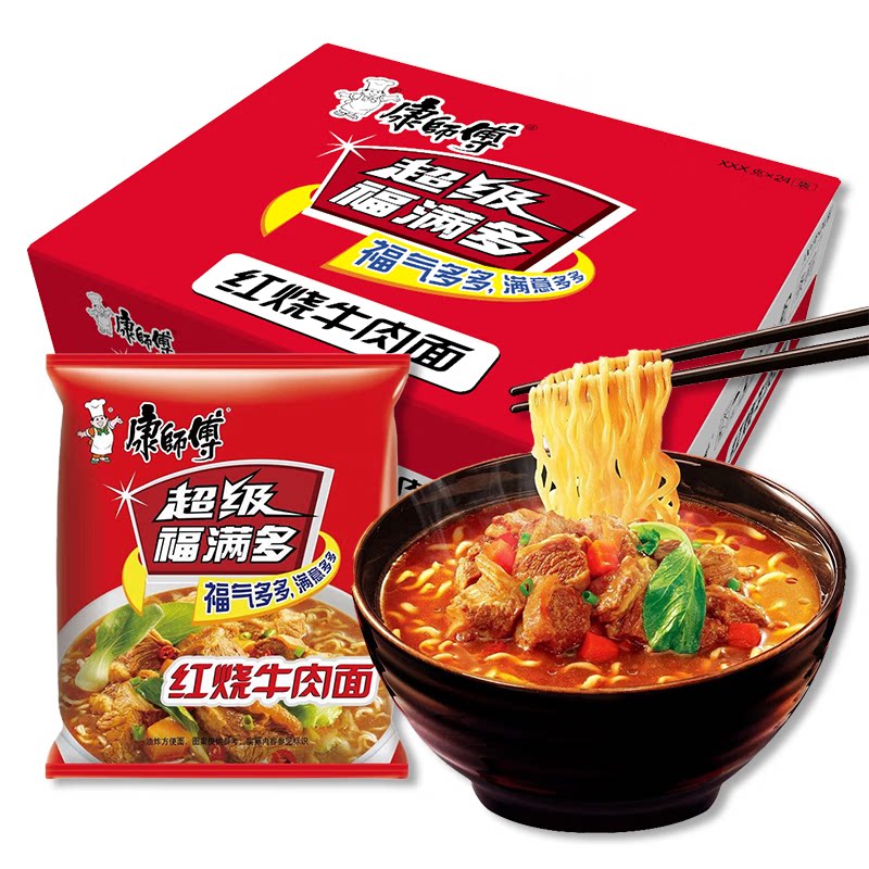 康师傅方便面超级福满多泡面整箱24袋批发宿舍囤货红烧牛肉排骨面