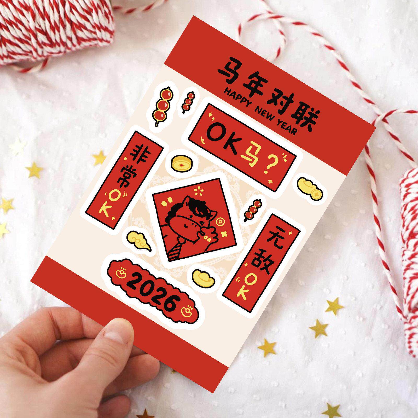 2026年马年新款春节书法小对联手机贴纸春联国风喜庆新年装饰