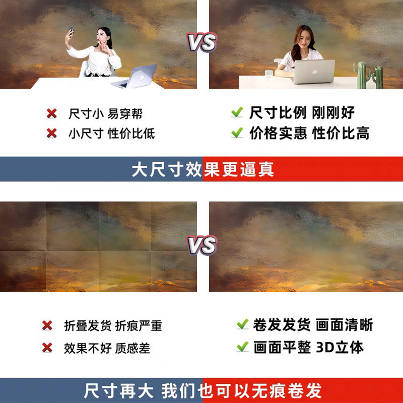 油画肌理3d立体直播背景布莫奈风格喷绘高清壁纸壁画直播间背景墙夕阳客厅高级感