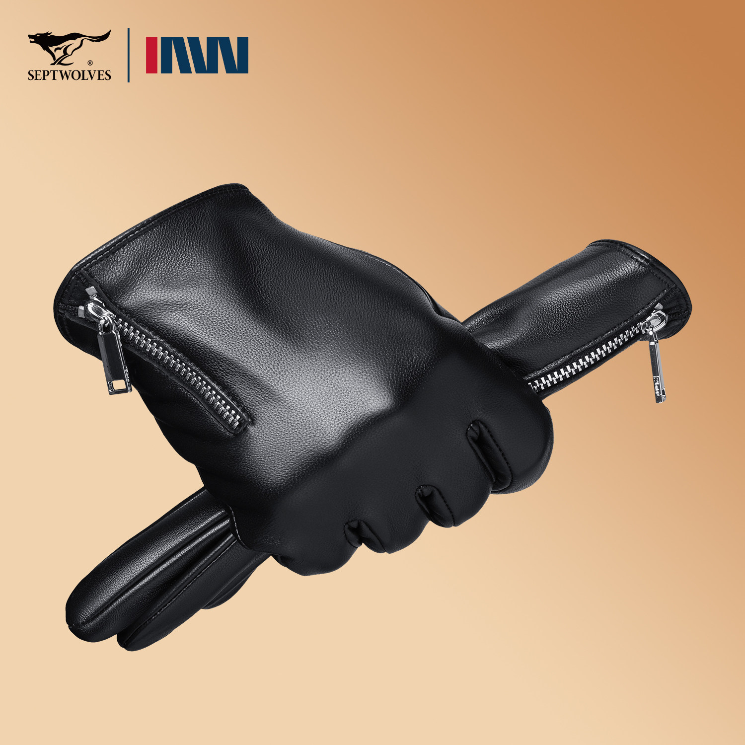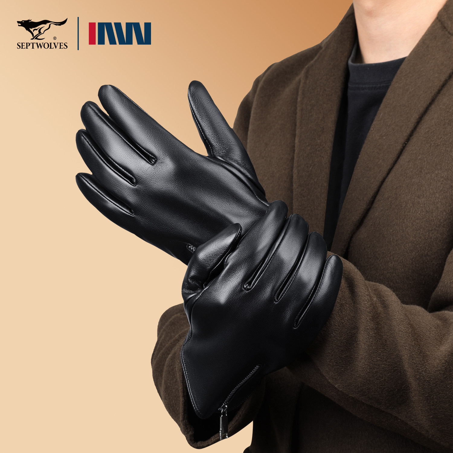 七匹狼男士羊皮加绒手套春季骑行挡风保暖触屏开摩托机车真皮手套