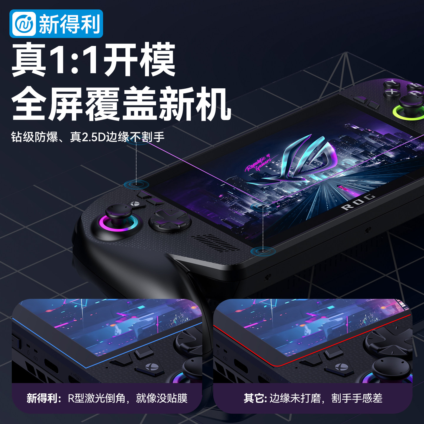 新得利适用华硕ROG掌机xbox ally x钢化膜游戏机全屏贴膜三代防反光保护膜玩家国度高清屏幕膜防摔周边配件