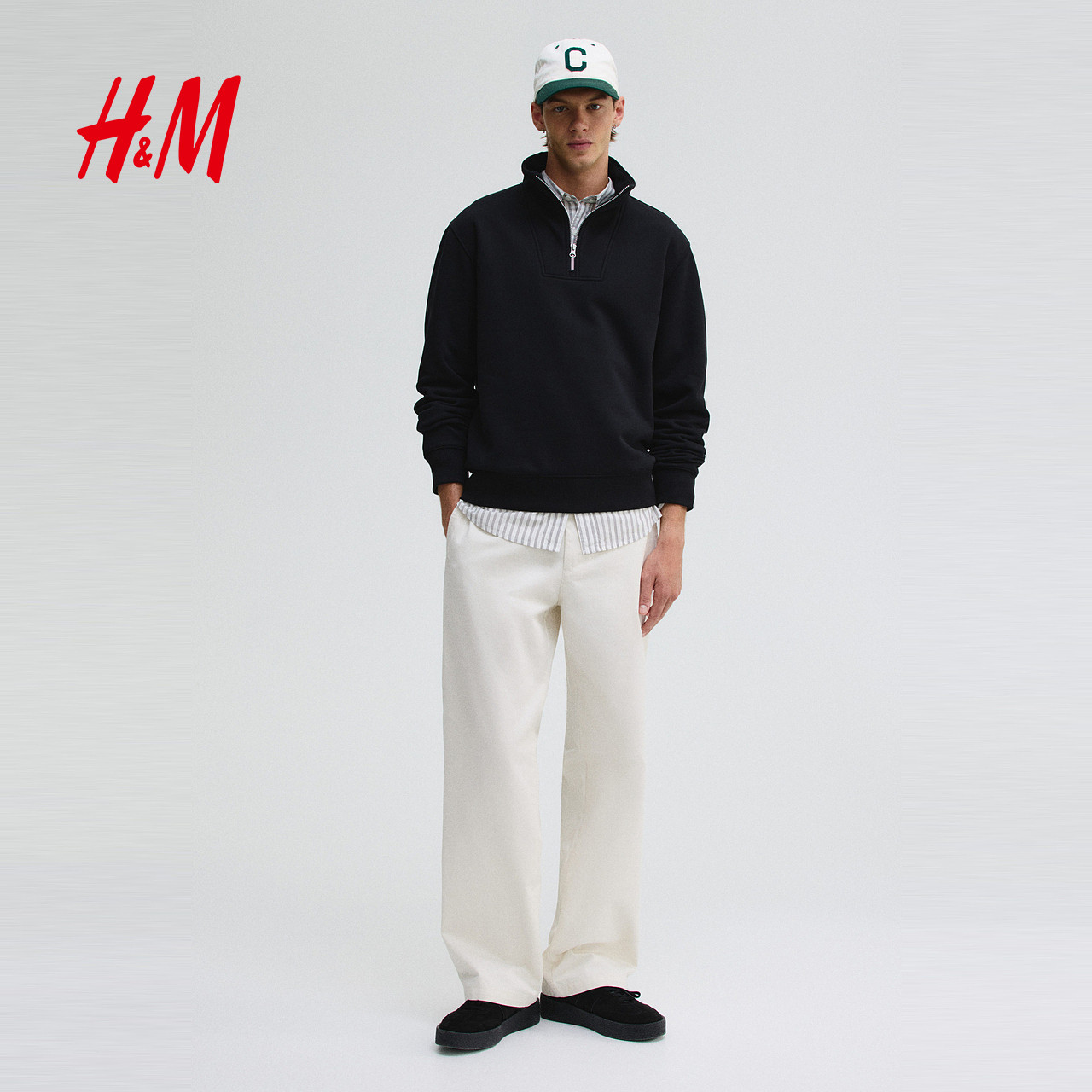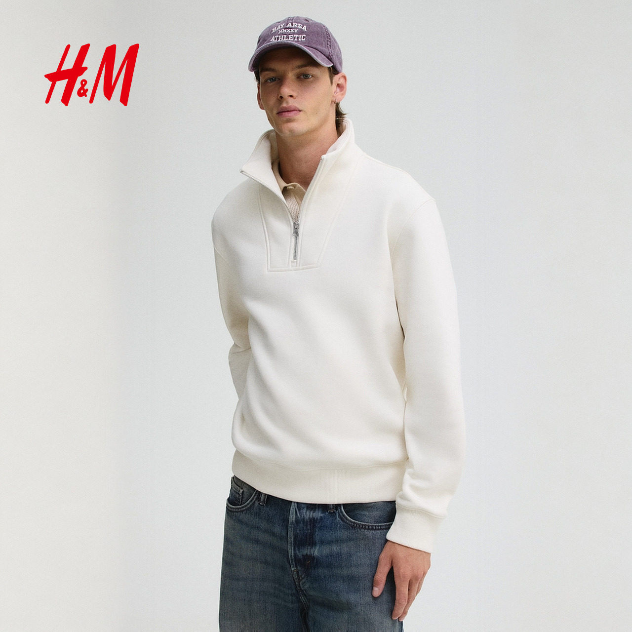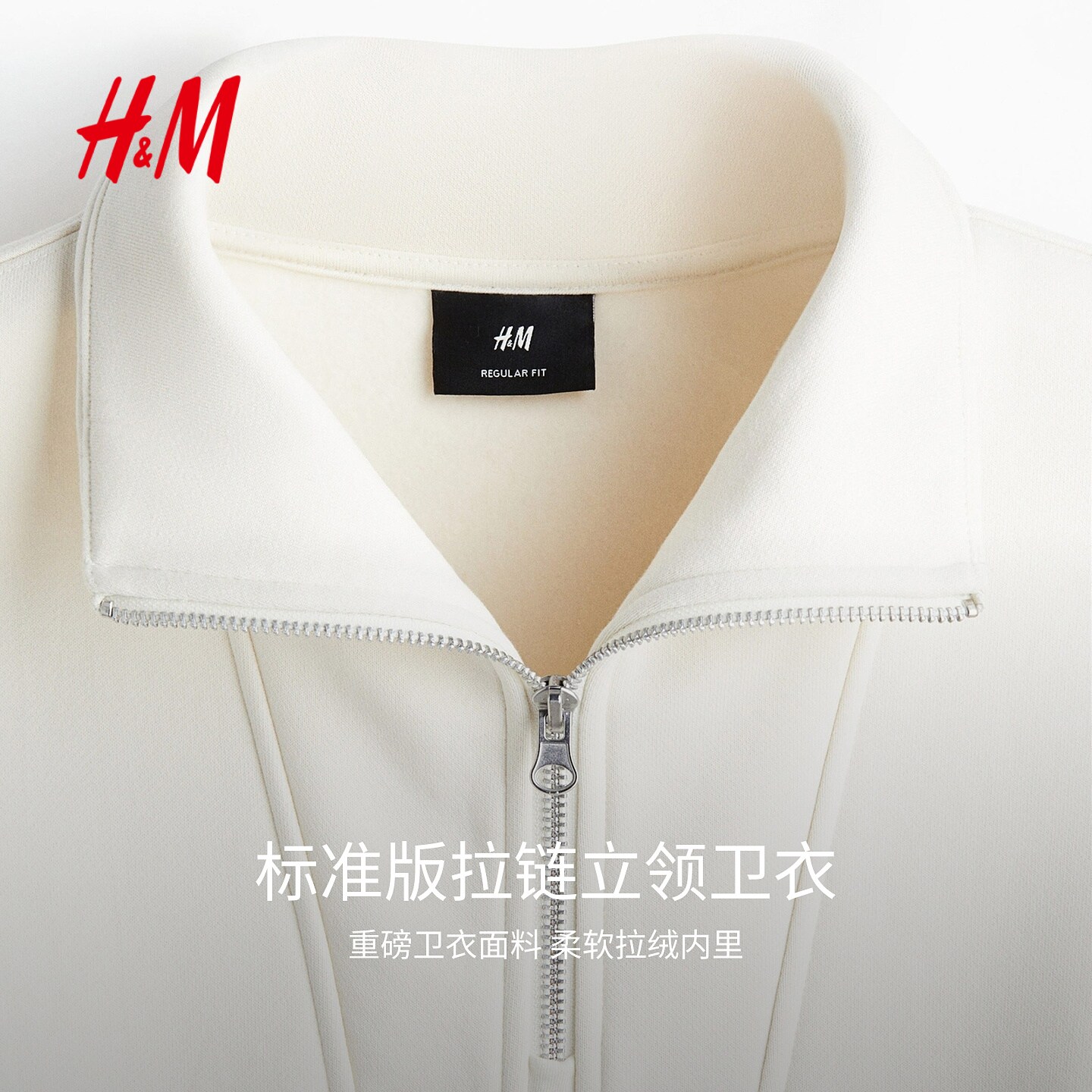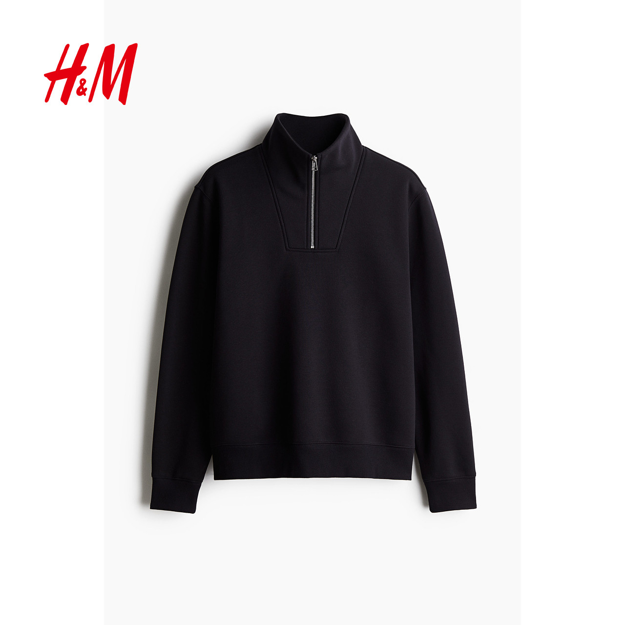 HM男装女装卫衣春季半拉链立领保暖加绒重磅潮流情侣套衫1241739