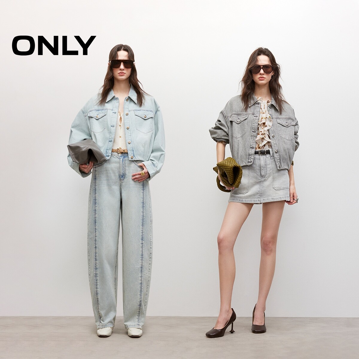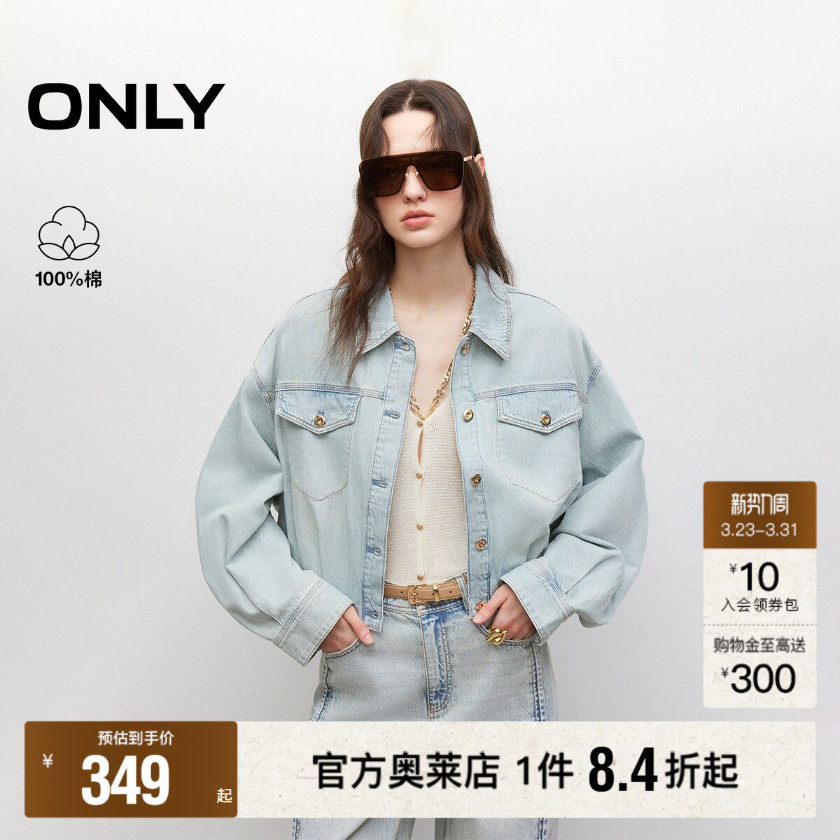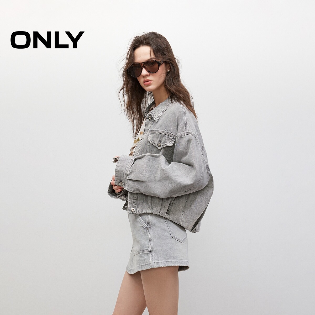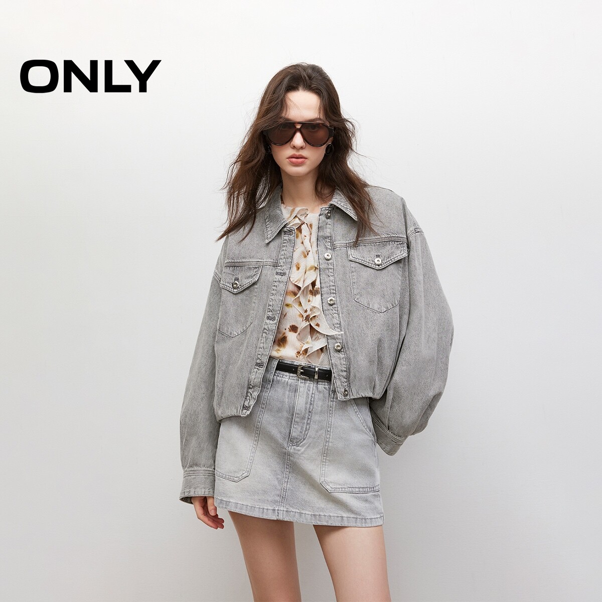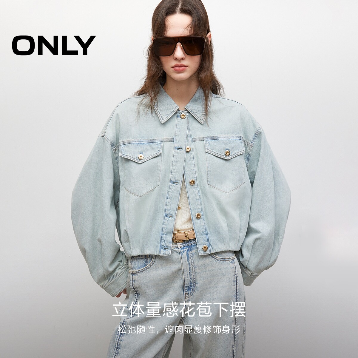 【ONLY奥莱】春季复古做旧水洗宽松慵懒落肩长袖短款牛仔外套女