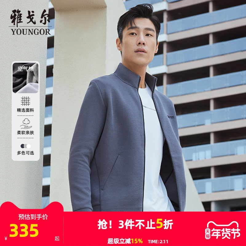 【空气棉】雅戈尔春秋季男士卫衣立领开衫商务休闲针织纯色外套