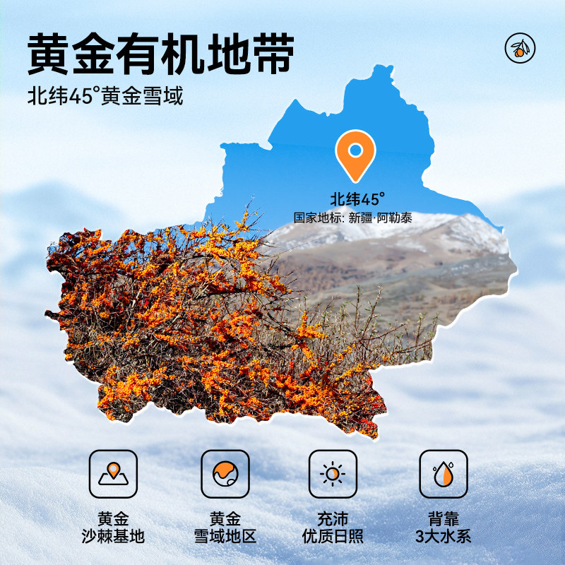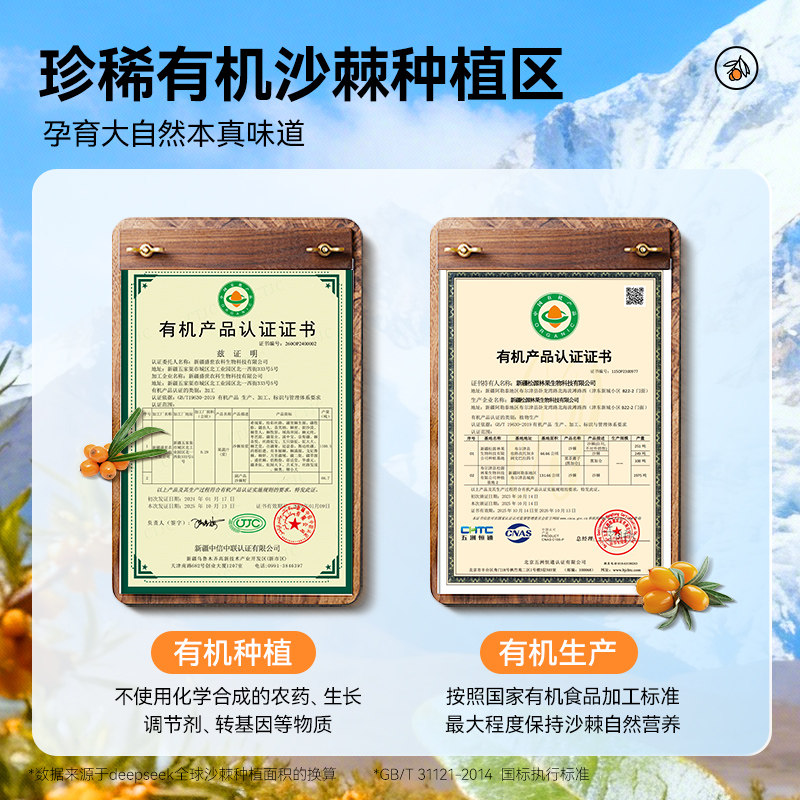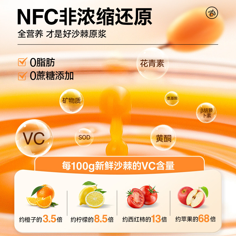 新疆有机沙棘原浆正品野沙棘汁鲜果生NFC100%无添加500ml原液饮料