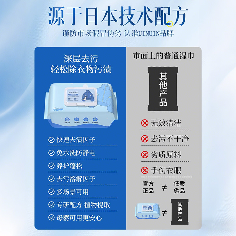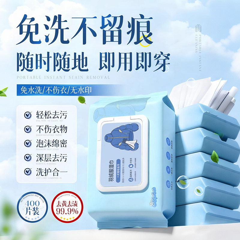 羽绒服免洗清洁湿巾清洗剂干洗强力去污去渍湿纸巾家用免水洗便携