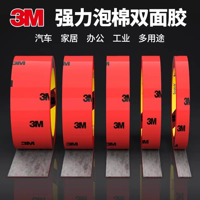 3m双面胶强力高粘度防水耐高温泡沫海绵固定墙面汽车专用无痕胶带汽车改装专用黏ETC尾翼挡雨眉踏板用无痕胶