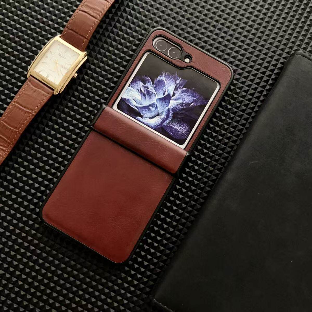 适用 三星zflip7手机壳新款复古疯马纹zflip6中轴全包商务高档zflip5高级防摔zflip4高端时尚w24flip皮质简约