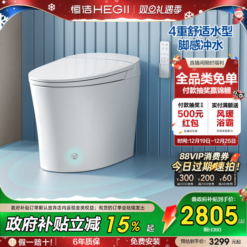 恒洁智能马桶全自动一体小户型家用脚感冲水零压坐便器舒适洗H360