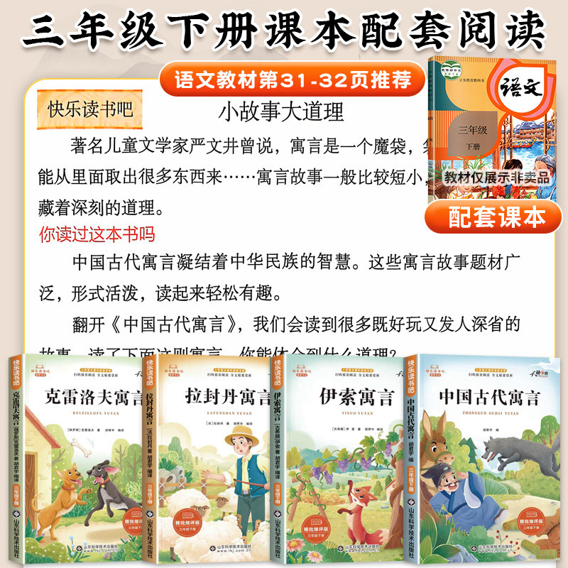 全套4册中国古代寓言故事三年级下册必读的课外书快乐读书吧老师推荐小学生3下学期阅读书目伊索寓言克雷洛夫拉封丹全集配套人教版