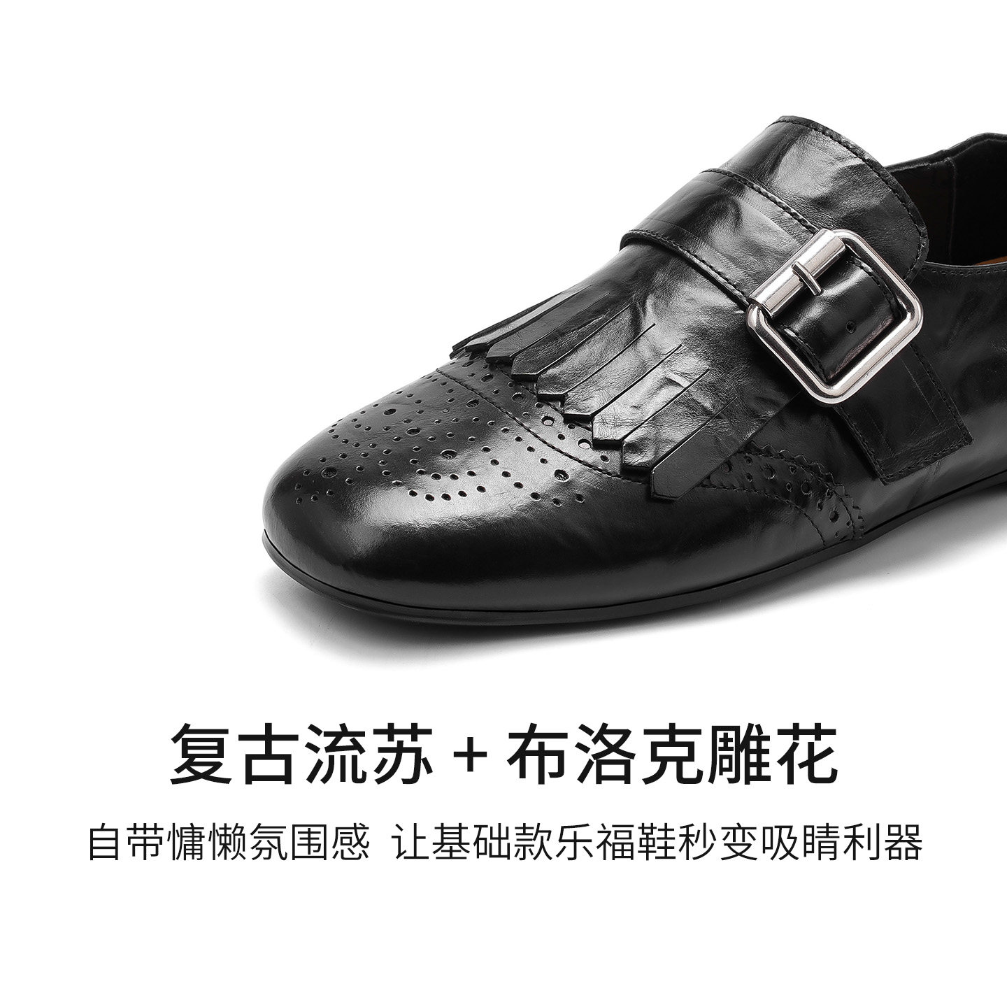 星期六英伦风布洛克小皮鞋女2026年春季新款皮带扣复古粗跟乐福鞋