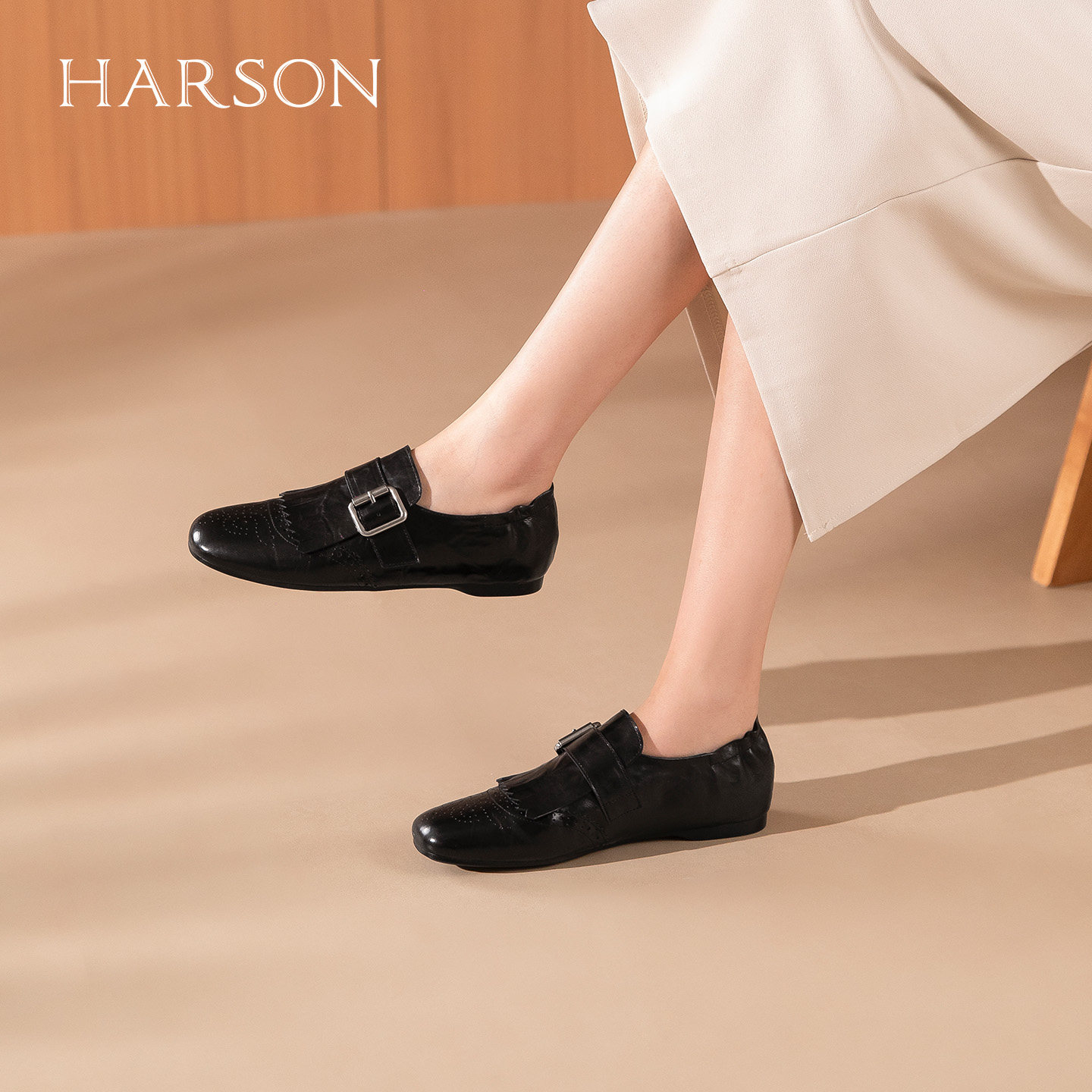 哈森英伦风复古流苏布洛克鞋女时尚雕花牛津鞋2026新款HWS260186