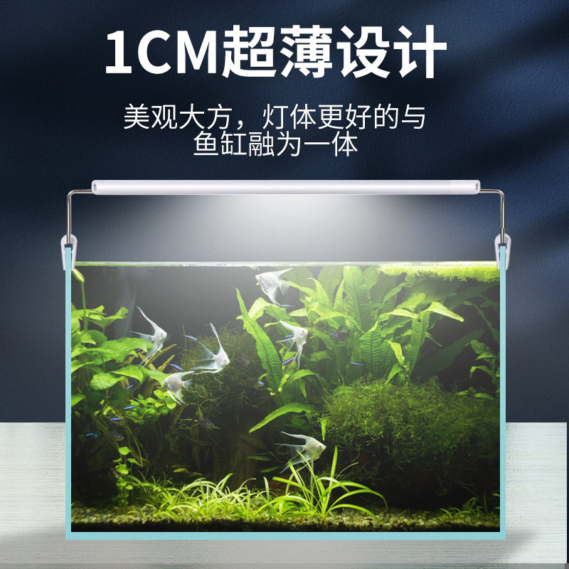 水草灯小型鱼缸专用led灯防水全光谱观赏支架灯三色照明灯爆藻灯