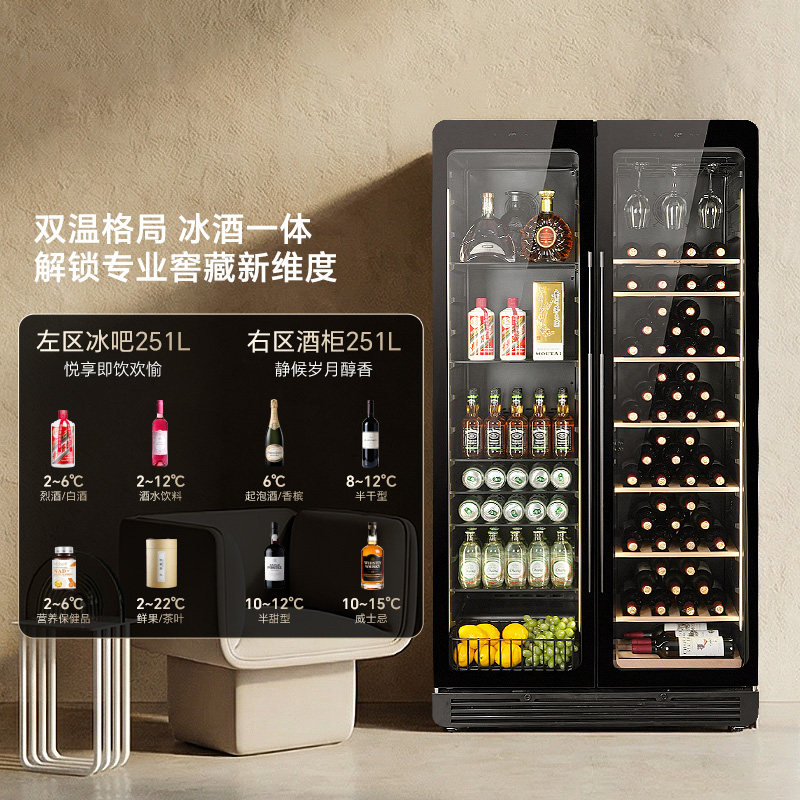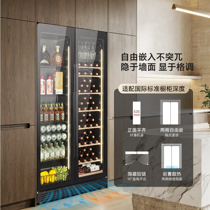 HCK哈士奇高端红酒柜恒温家用客厅冰吧嵌入超薄双门双温一级能效