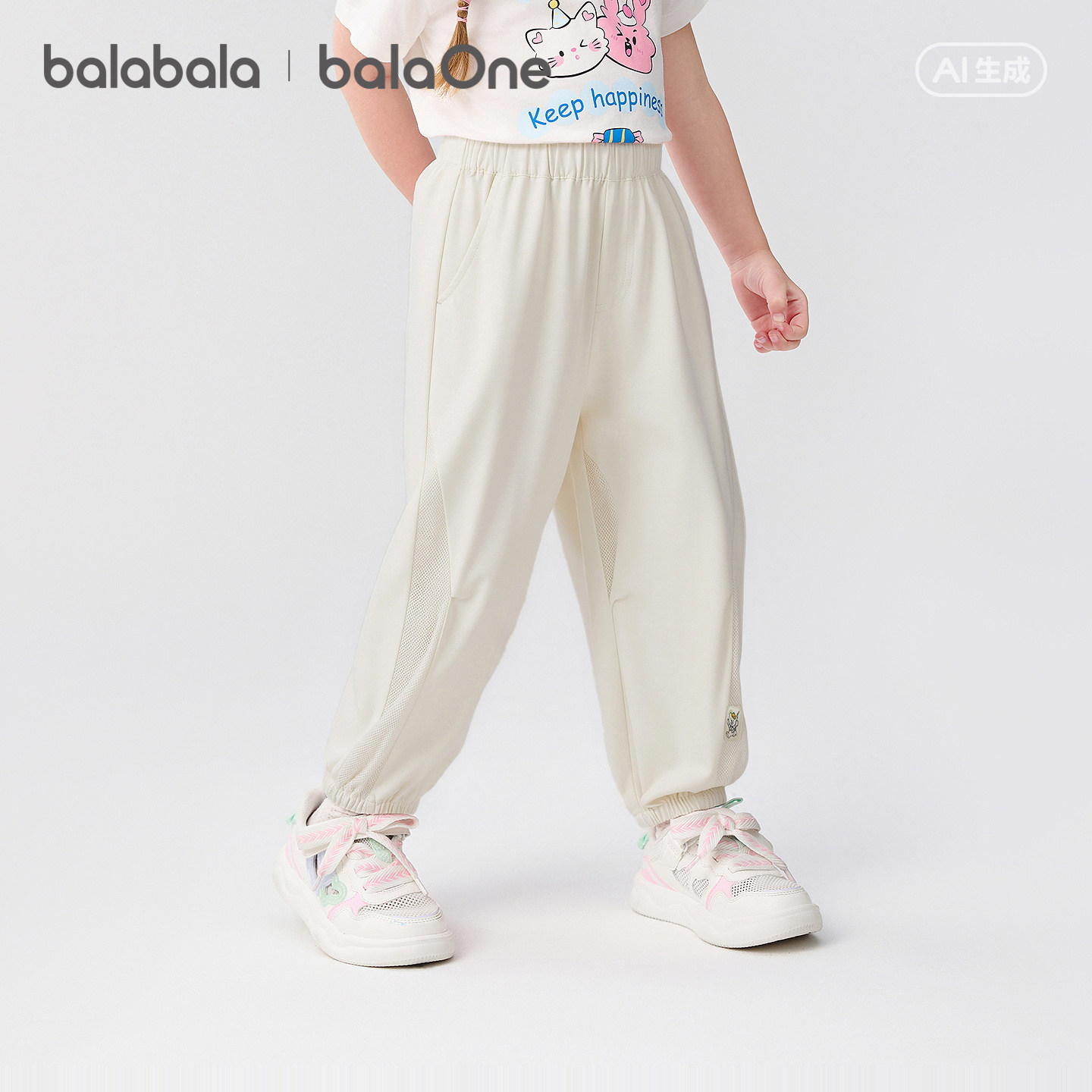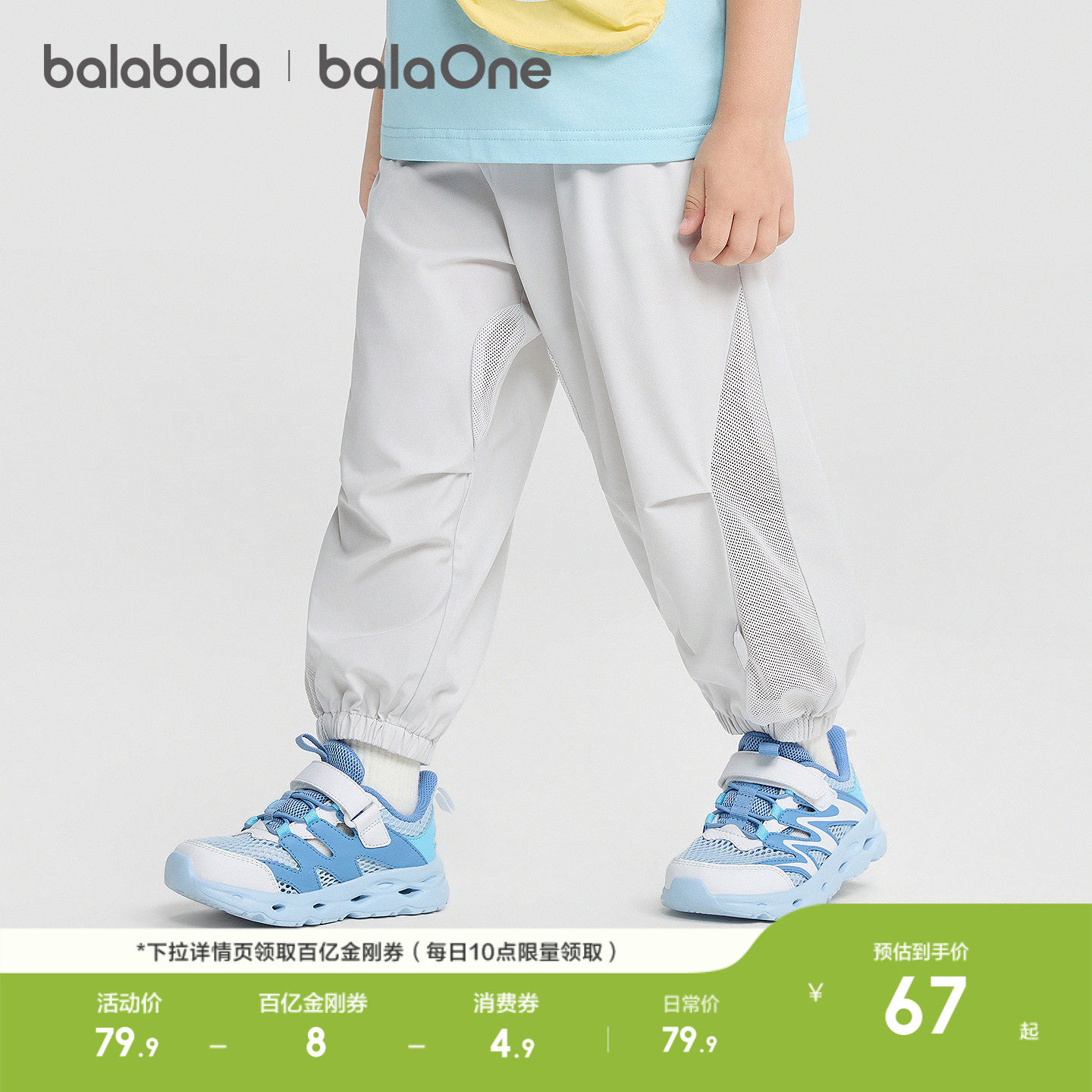 巴拉巴拉男女童休闲裤儿童裤子2026新款夏季薄款拼接网眼透气长裤