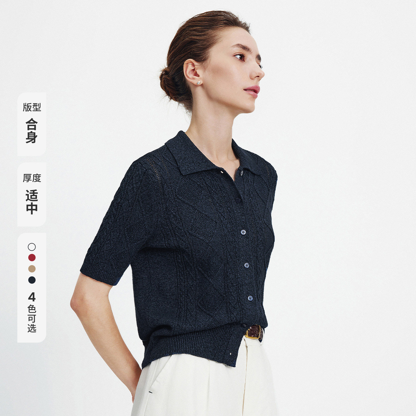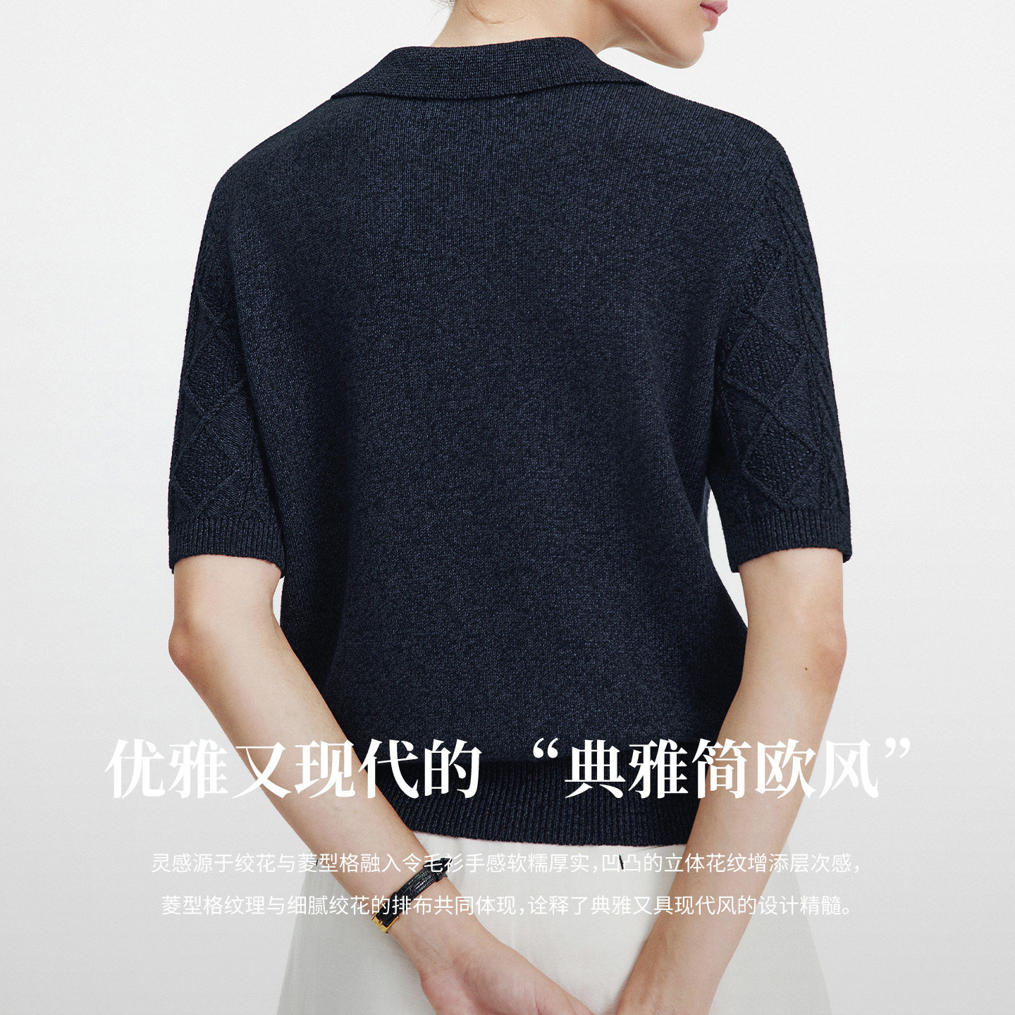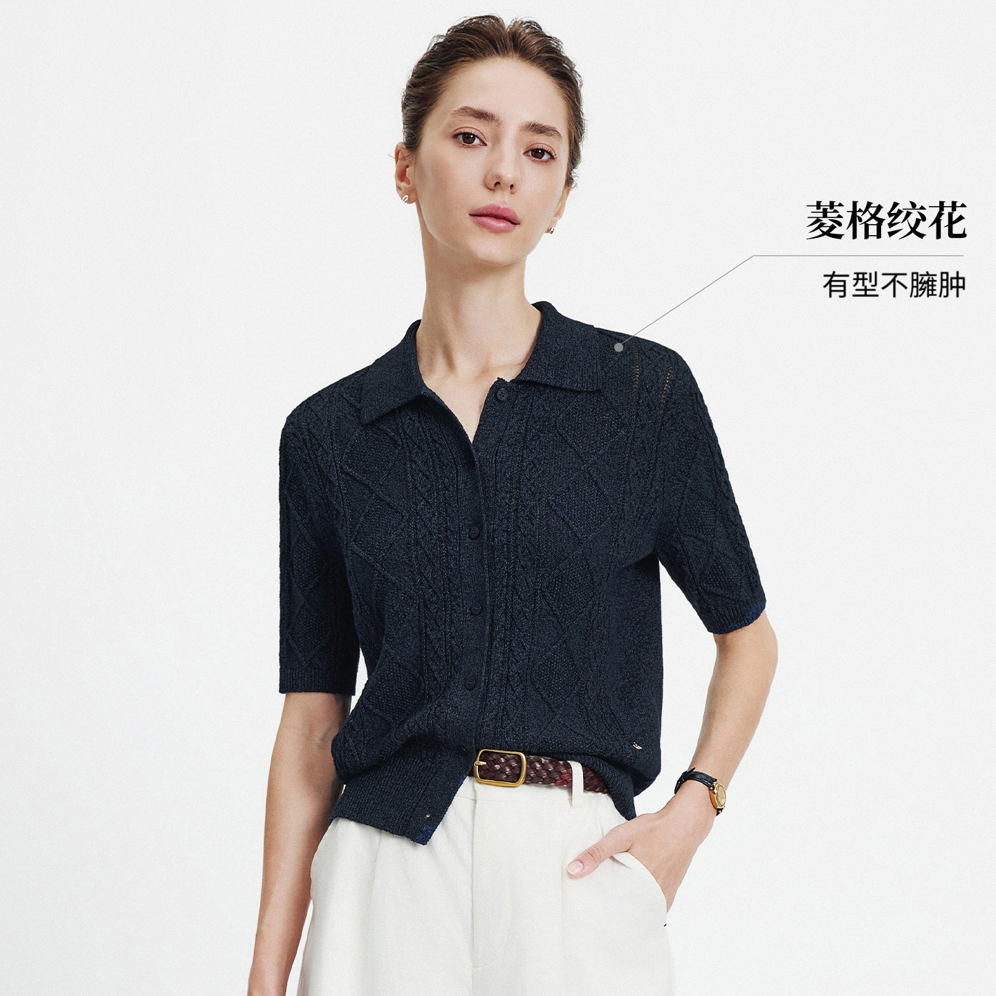 Navigare意大利小帆船时尚绞花针织衫女2026春夏新款翻领短袖开衫