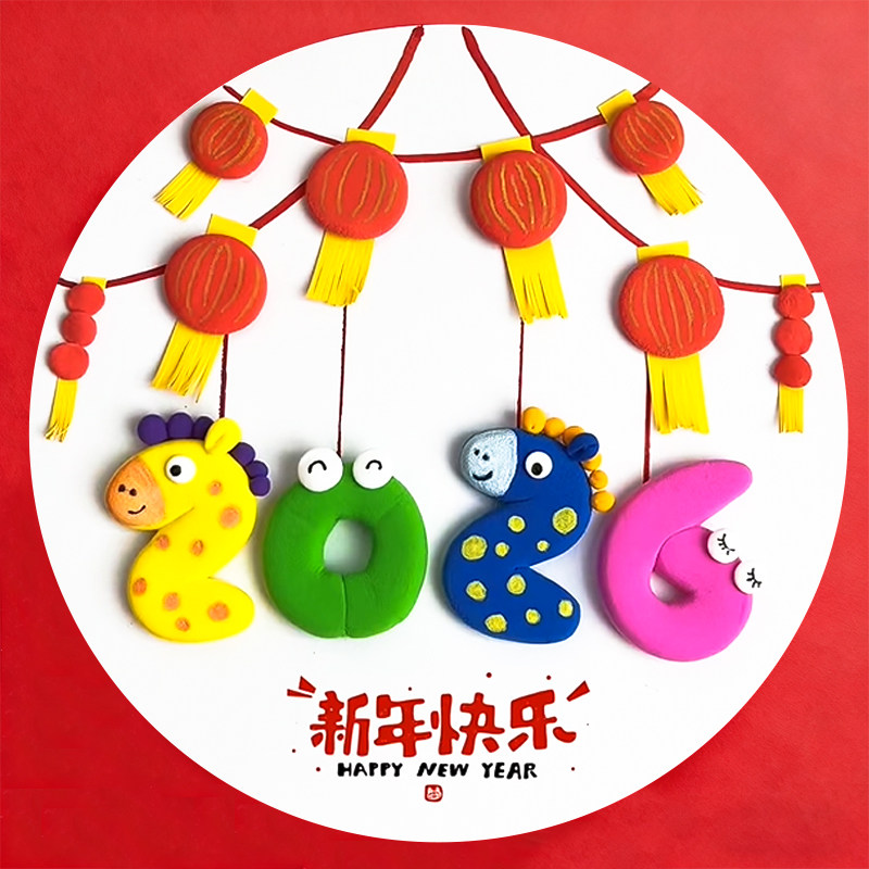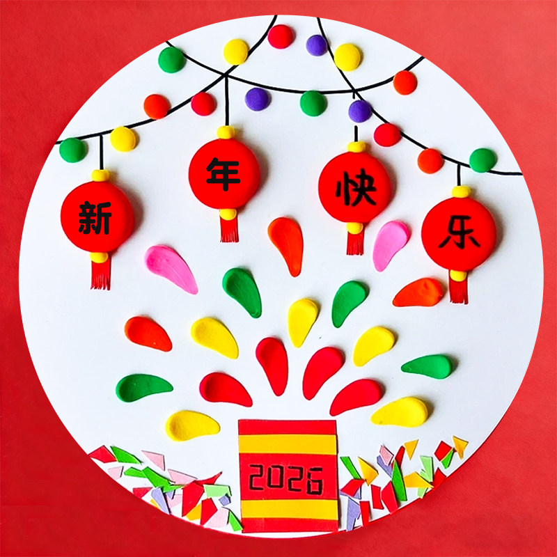 手工diy粘土画材料包元宵节新年幼儿园小学生专用无毒戳戳画儿童创意美术绘画卡纸彩泥12色24色太空泥亲子