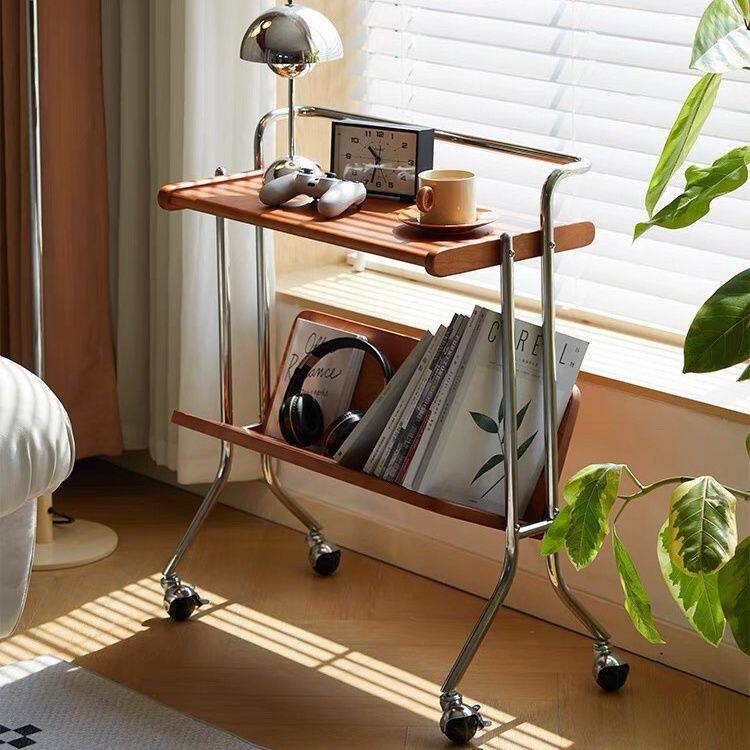 b中古可移动小推车沙发边几客厅复古实木茶几杂志书架床头置物架