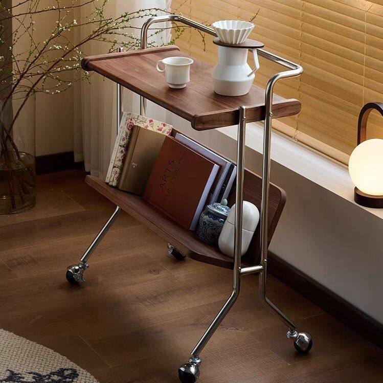 中古推车边几小户型客厅沙发边柜不锈钢原木小推车双层置物架餐车