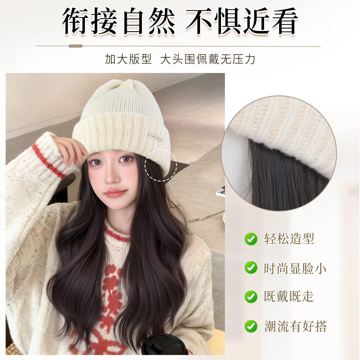 帽子假发一体女2026秋冬新款针织帽卷发自然仿真隐形假发帽子