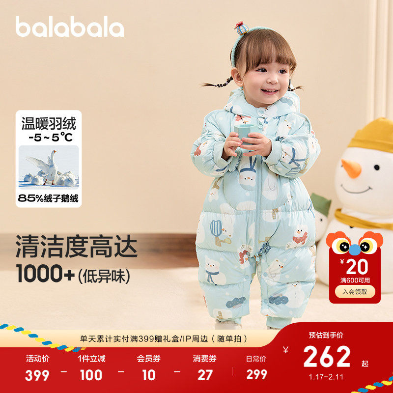 巴拉巴拉童装新生婴儿连体衣宝宝冬装外出哈衣爬服连帽鹅绒萌趣潮