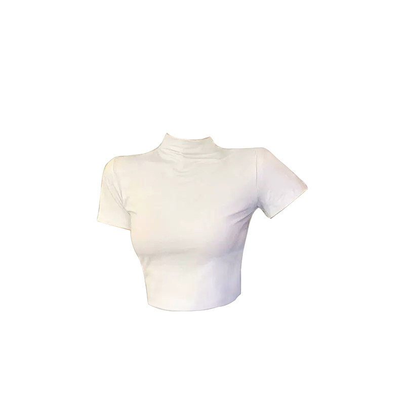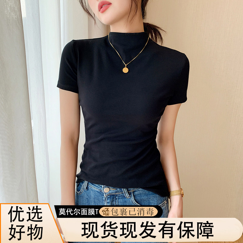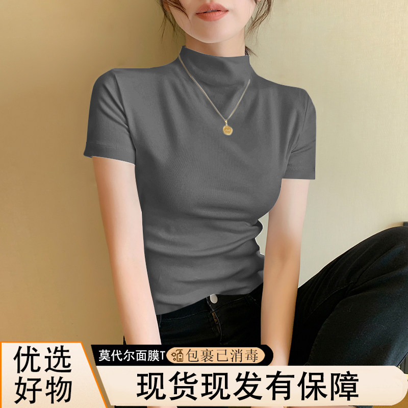 莫代尔半高领纯白打底衫修身显瘦短袖t恤女2025春夏新款面膜T上衣