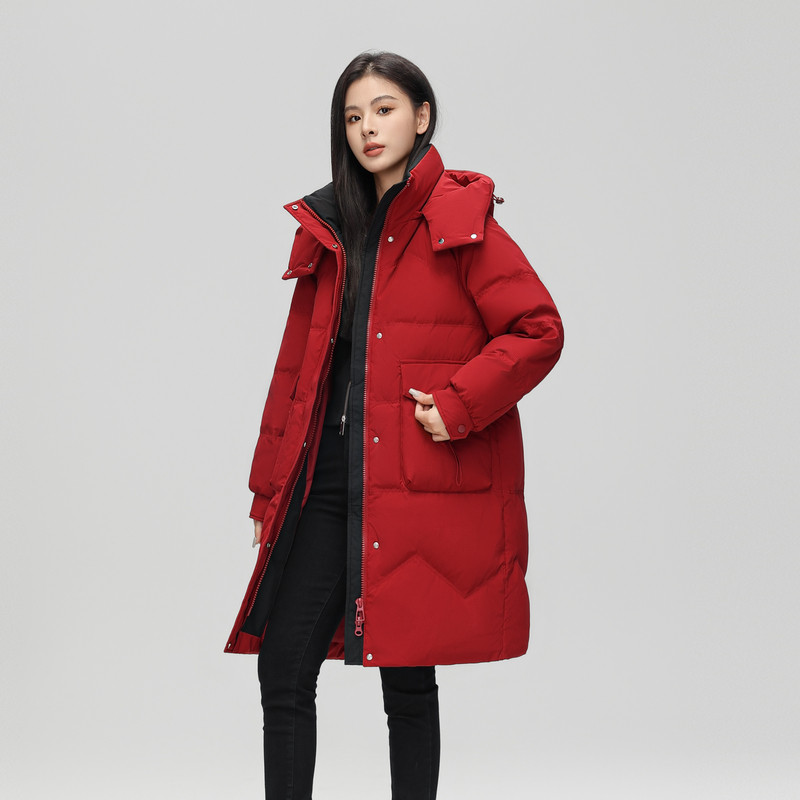 雪中飞2026春新款女士中长款羽绒服三防可脱卸帽廓形韩版气质暖
