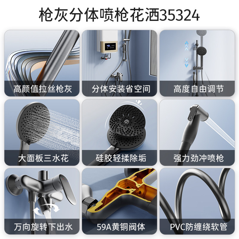 九牧枪灰色淋浴器花洒套装简易家用可升降浴室喷枪头卫生间现代