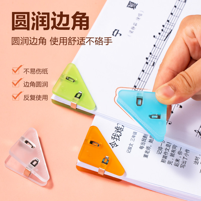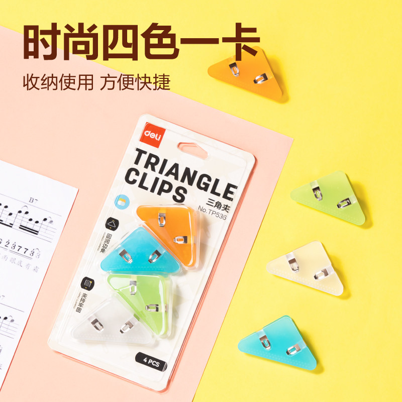 得力三角夹边角夹试卷夹三角文件夹小学生收纳整理资料夹子文具卷子夹书夹办公用品体检票据长尾夹手账夹书本