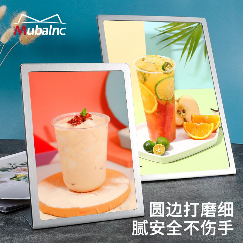 MubalncA4不锈钢台牌奶茶店台卡点餐广告牌酒水菜单桌面牌展示架