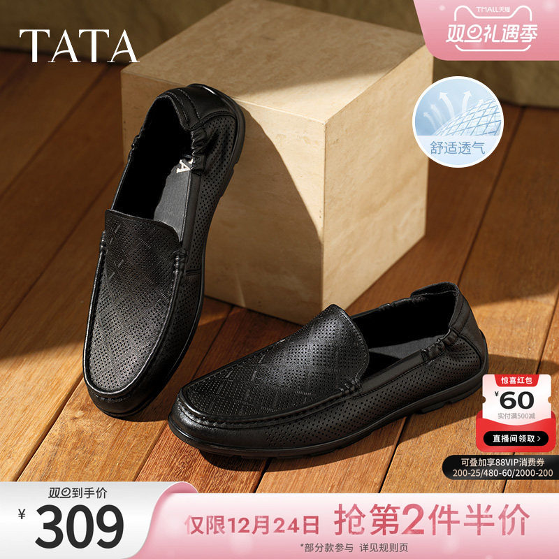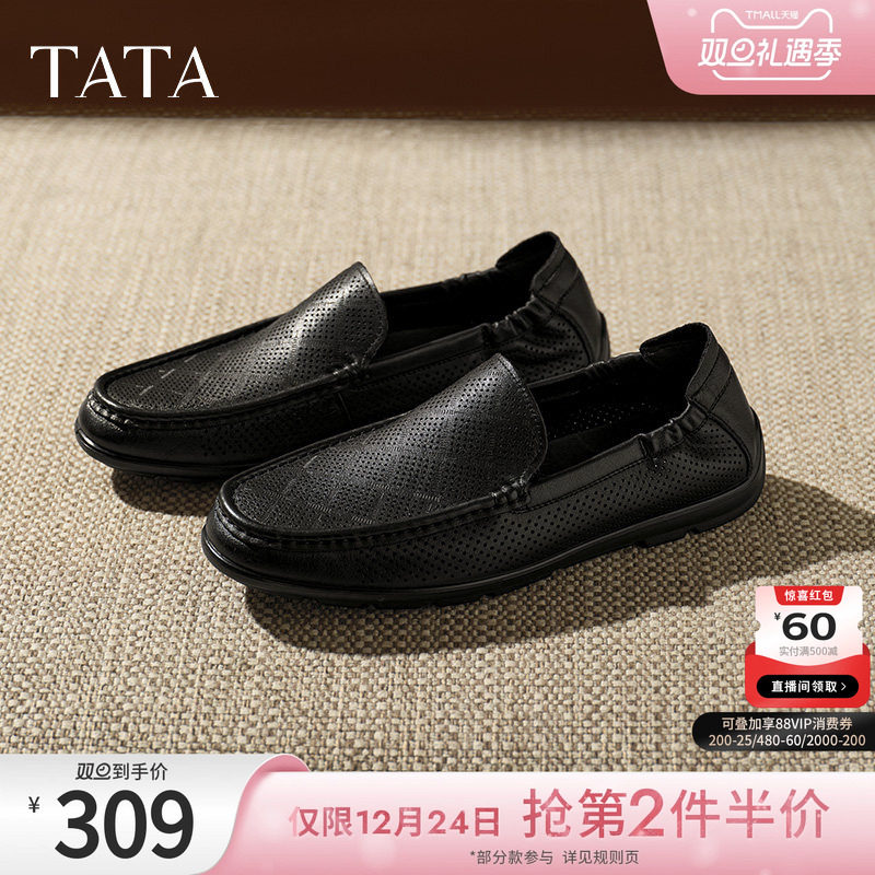 TATA他她打孔透气豆豆鞋男鞋一脚蹬商务休闲皮鞋新款鞋子QGH01BM5