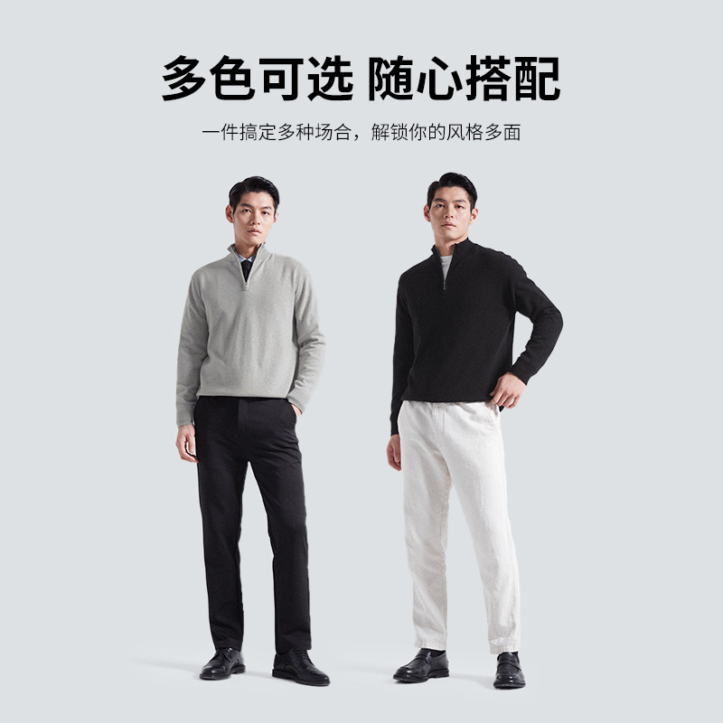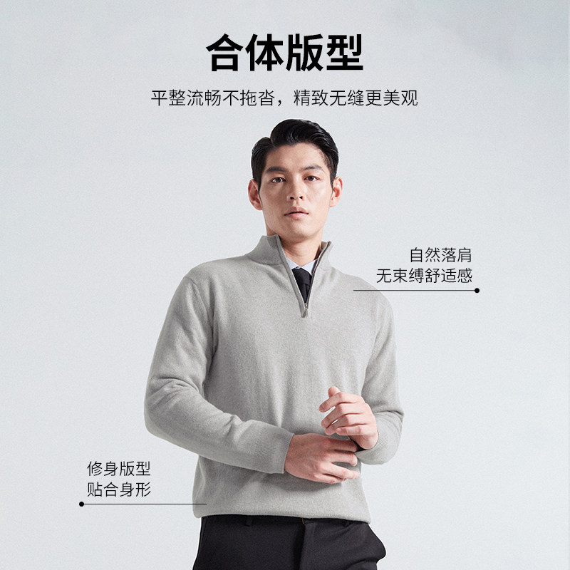 杉杉新款山羊绒衫男士保暖针织毛衫半拉链秋冬加厚毛衣卫衣外套