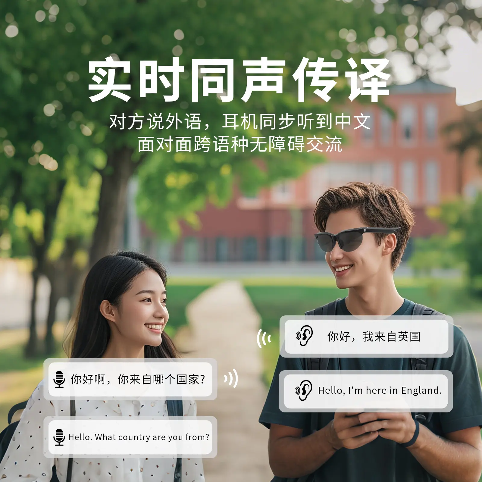AI实时翻译智能无线蓝牙耳机眼镜双耳开放式无线立体声蓝牙耳机