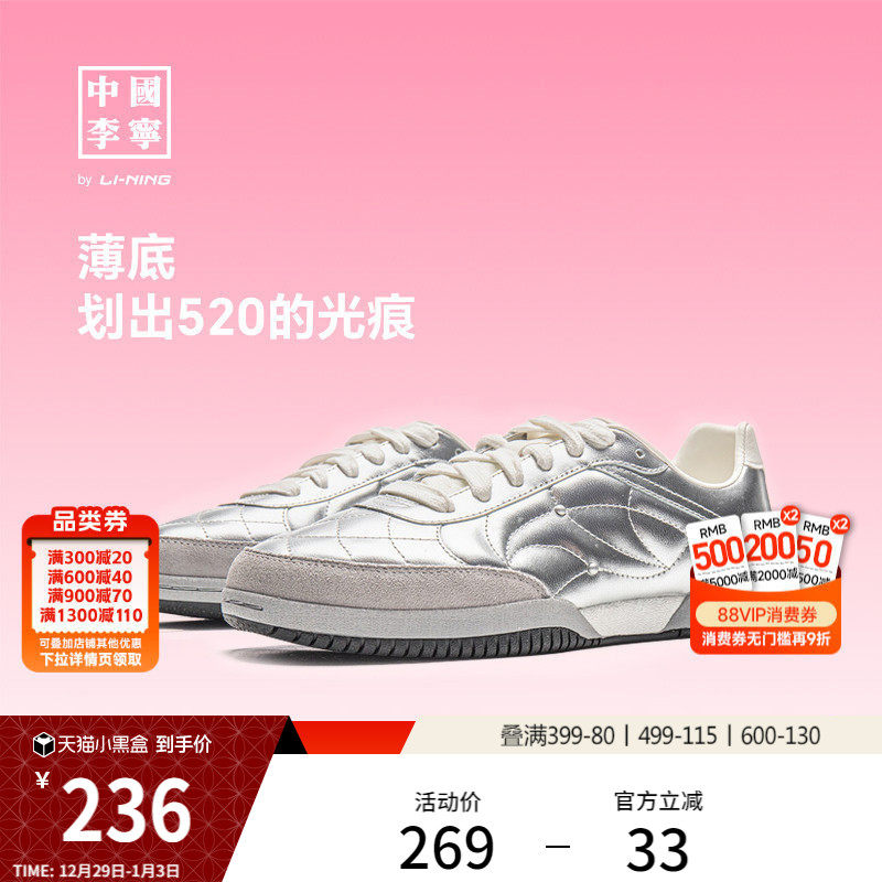中国李宁乒乓丨板鞋男女情侣鞋新款芭蕾鞋薄底休闲鞋银色运动鞋子