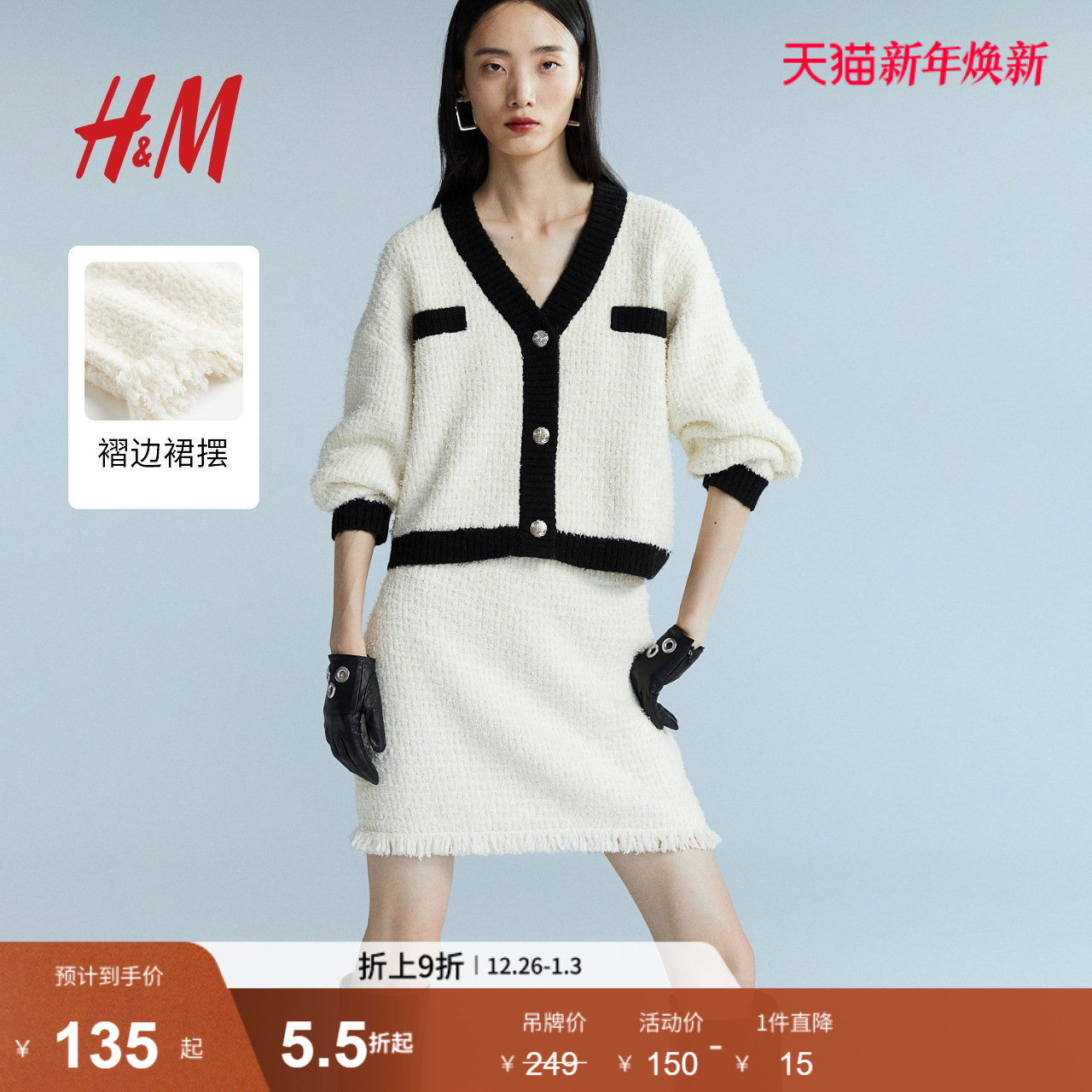 HM女装半身裙冬季简约优雅修身时尚A字短裙1223382