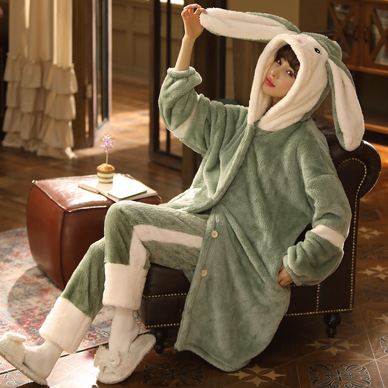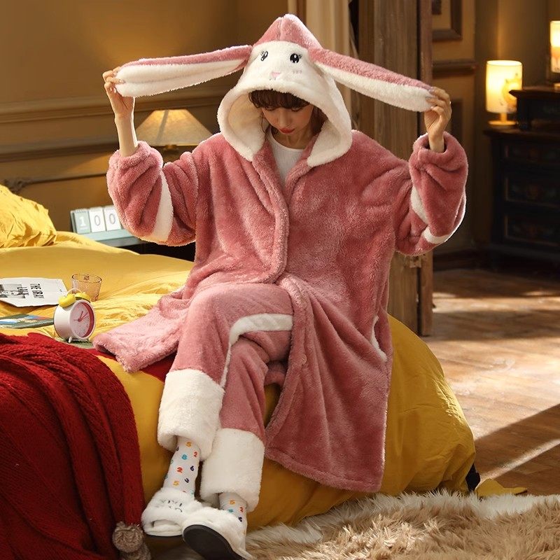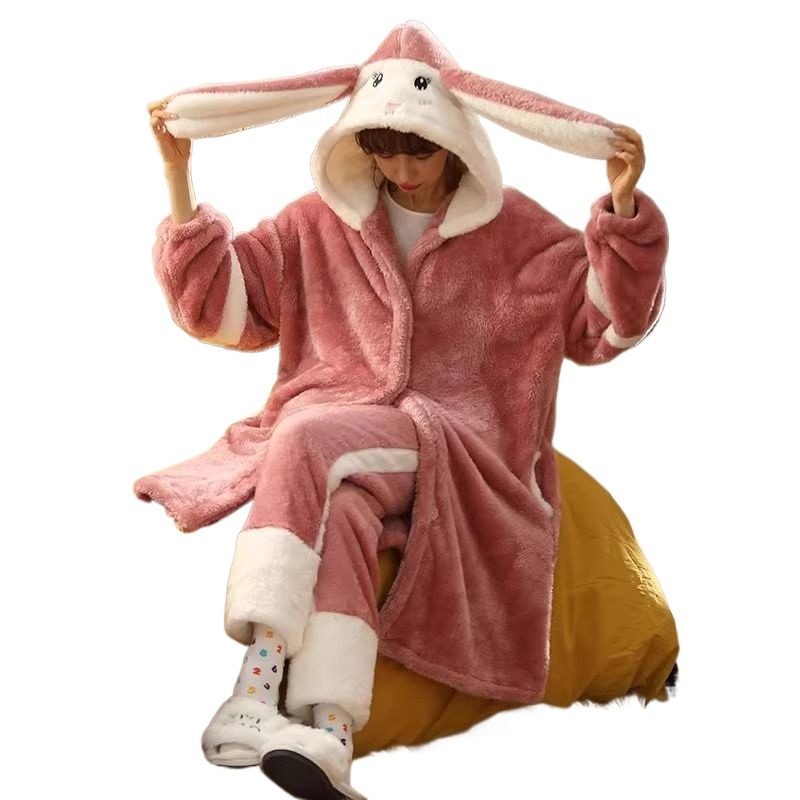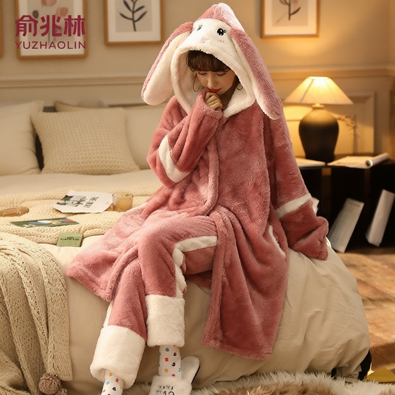 俞兆林睡衣女冬季珊瑚绒加绒加厚睡袍秋天可爱甜美兔家居服套装