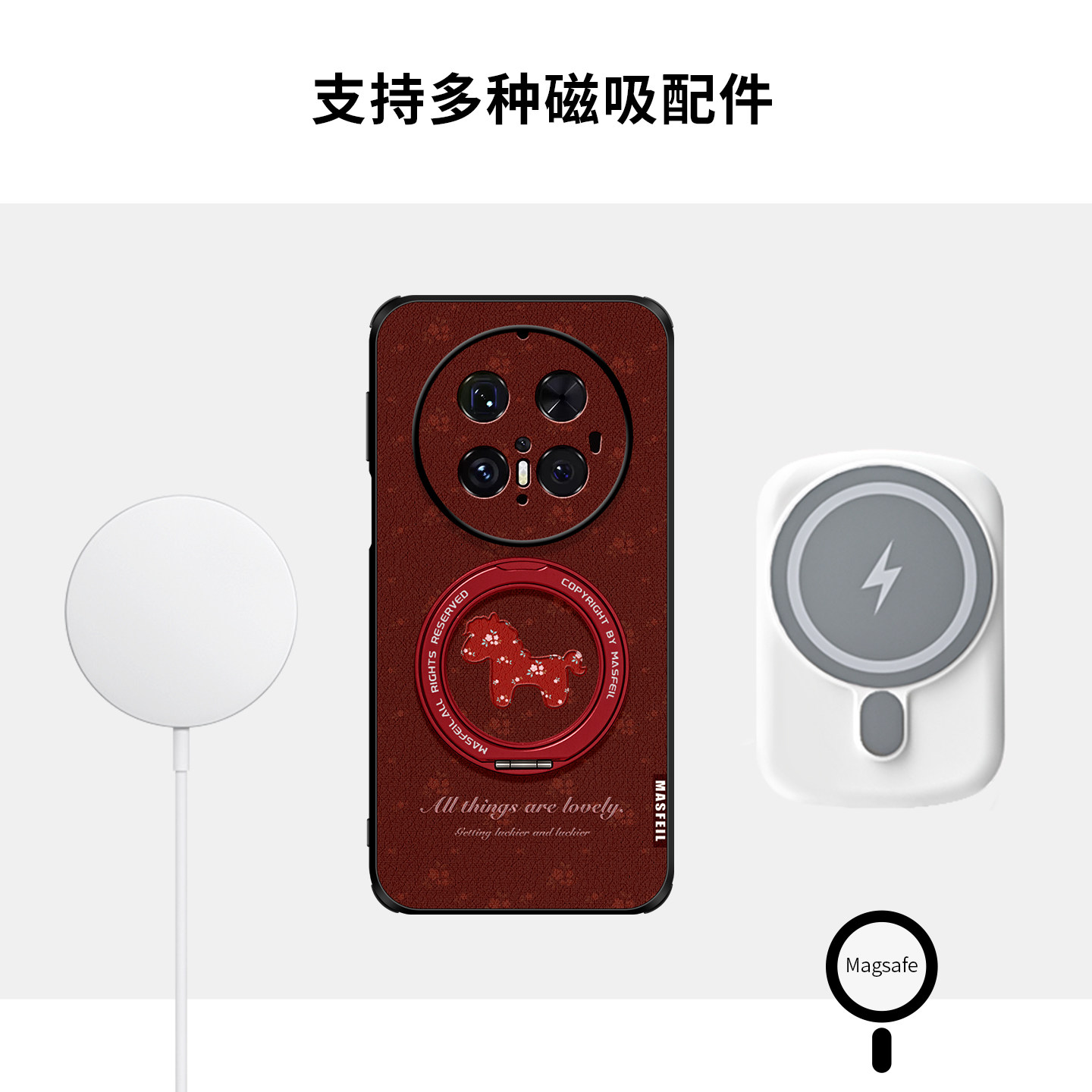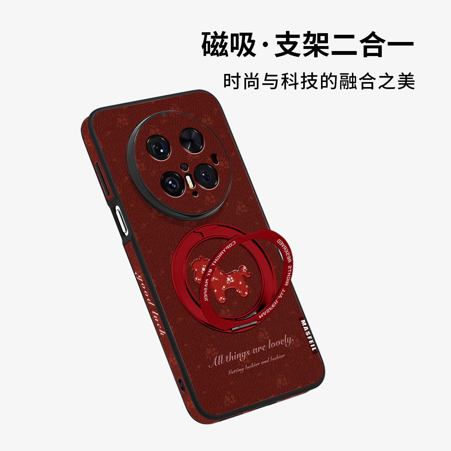 MASFEIL × 碎花小马适用华为Mate80Promax手机壳mt70新款Pura70磁吸支点mate60por支架Ho5全包p80新年红色