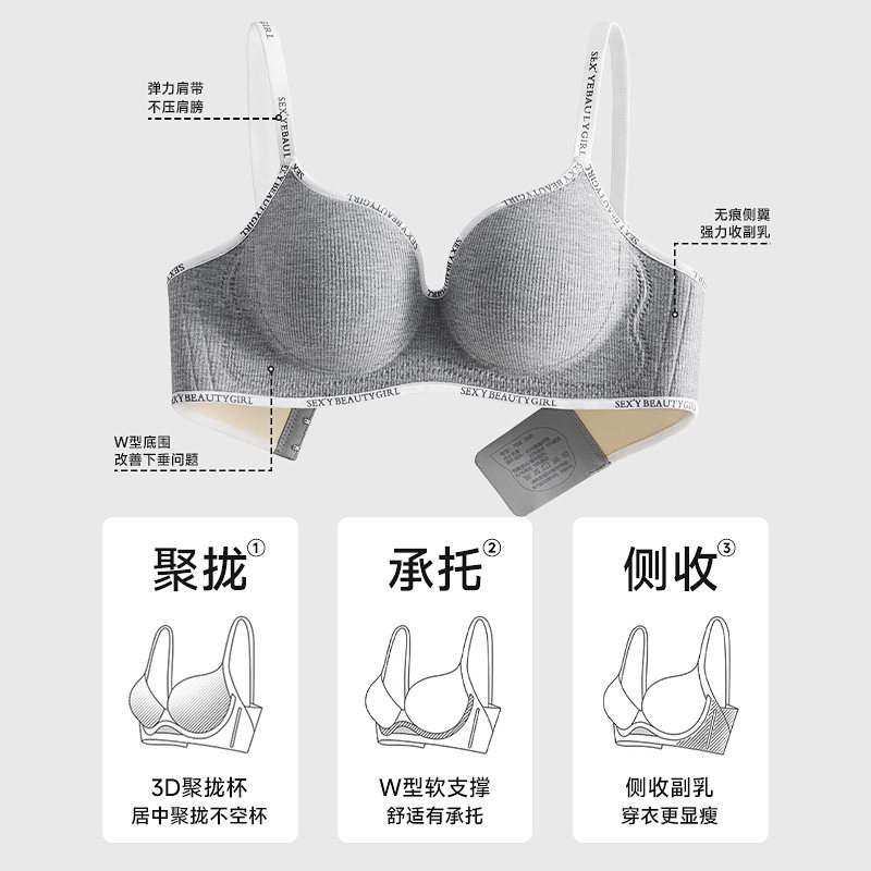 无痕舒适内衣女小胸聚拢上托收副乳防下垂按摩解压杯无钢圈文胸罩