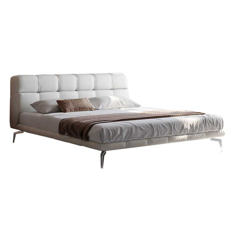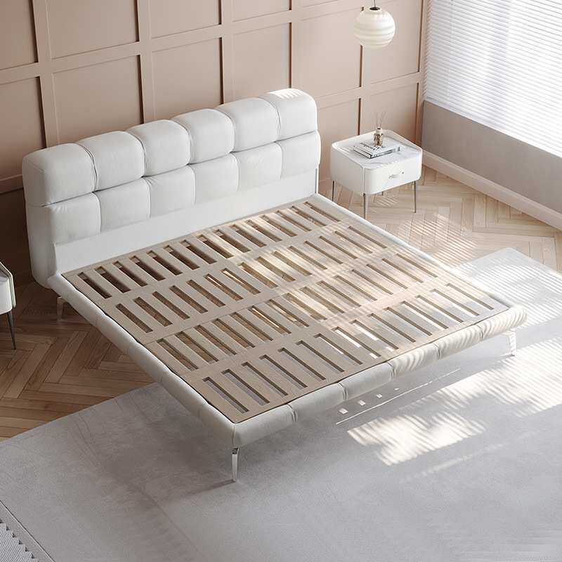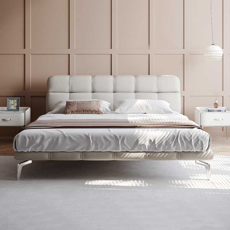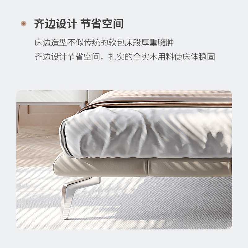 泡芙床意式极简真皮床现代简约奶油风榉木排骨架齐边款主卧皮艺床