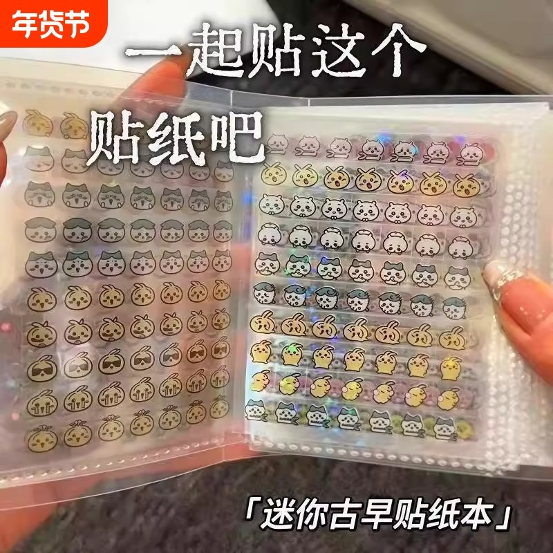 爆款可爱鼻嘎迷你古早贴纸本送卡通收纳镭射高清防水表情包diy