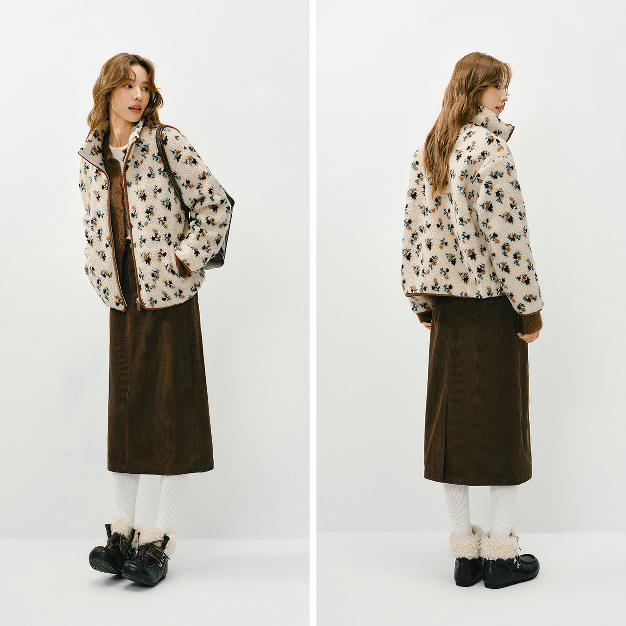 森马外套女冬季仿羊羔毛摇粒绒上衣宽松图案2025新款时尚复古夹克