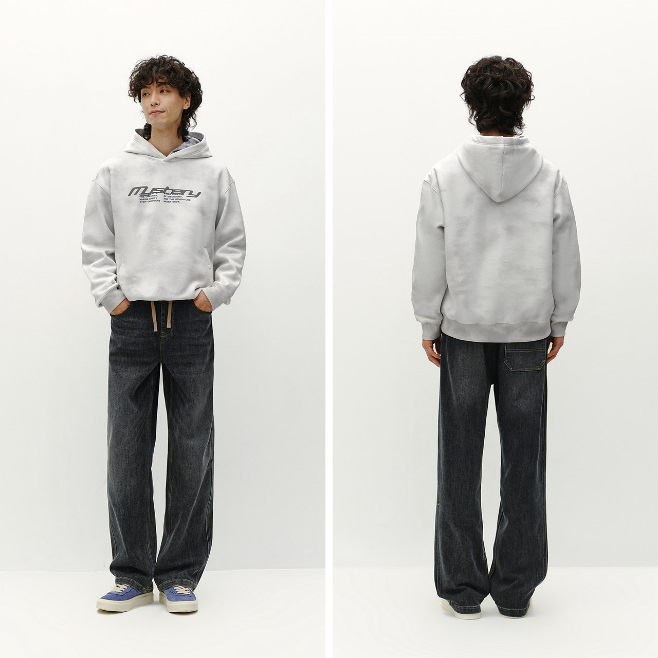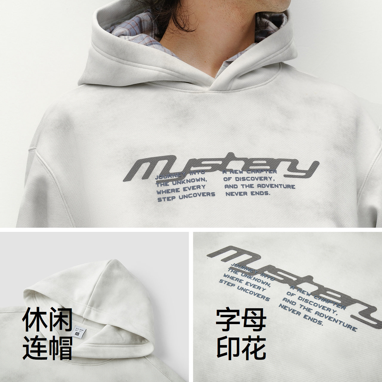 宽松连帽卫衣 复古印花 内里加绒