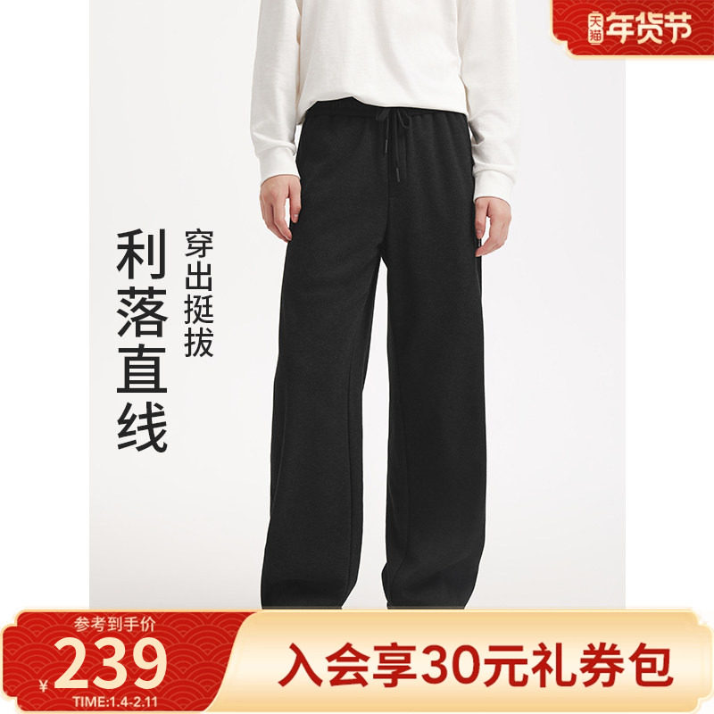 热风男士加绒卫裤2025年冬季新款宽松直筒垂坠感卫裤亲肤绒里
