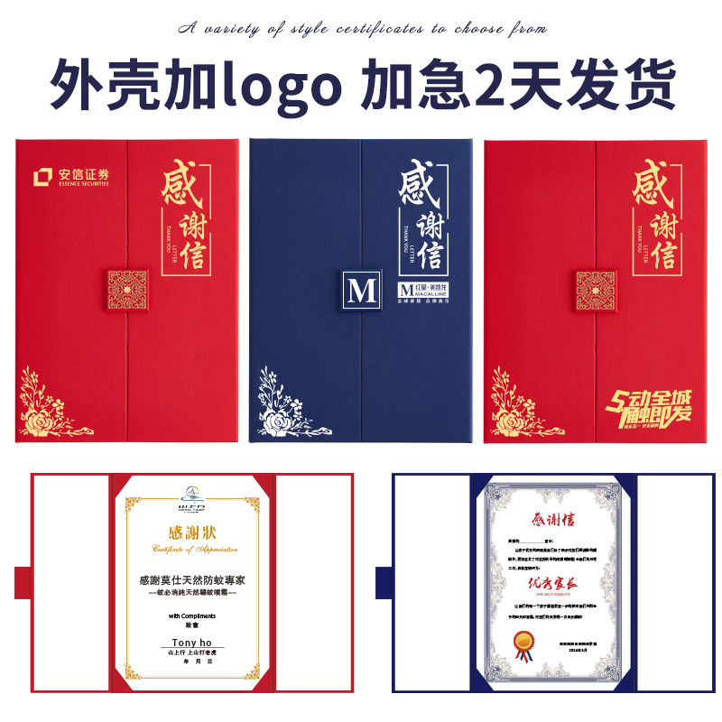 感谢信定制高级证书医院给医生的感谢状模板代笔裱框外壳荣誉打印