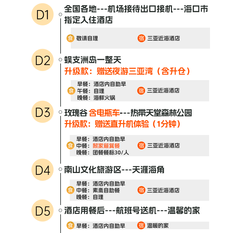 三亚5天4晚旅游团五日度假景区门票蜜月情侣亲子父母酒店吃喝玩乐